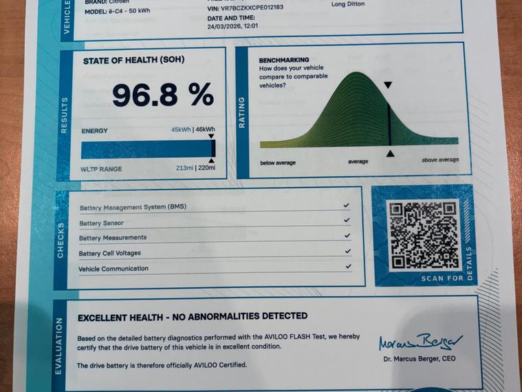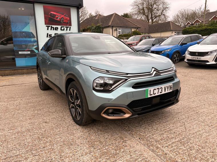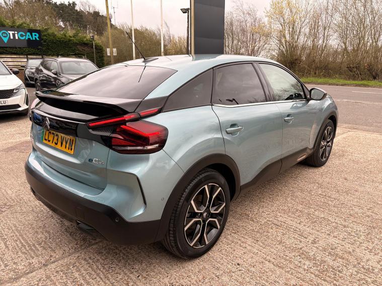 This 2023 Citroen e C4 C Series Edition is a superb example, having had only one owner since new. This electric vehicle boasts a 50 kWh battery offering a maximum range of 219 miles when new, making it ideal for both daily commutes and longer journeys. Charging is convenient, with a full charge at home taking approximately 7 hours and 30 minutes using a 7kW charger, while rapid public charging can take you from empty to 80% in just 32 minutes.The C Series Edition trim level comes equipped with a host of desirable features designed to enhance your driving experience. These include a Head Up Display for at a glance information, front and rear parking sensors along with a lateral parking aid, and a Top Rear Vision reversing camera to assist with manoeuvring. You'll also appreciate the automatic dual zone air conditioning for personalised comfort and keyless entry and start for effortless access. Furthermore, this model offers generous boot space, setting it apart from many other vehicles in its class.