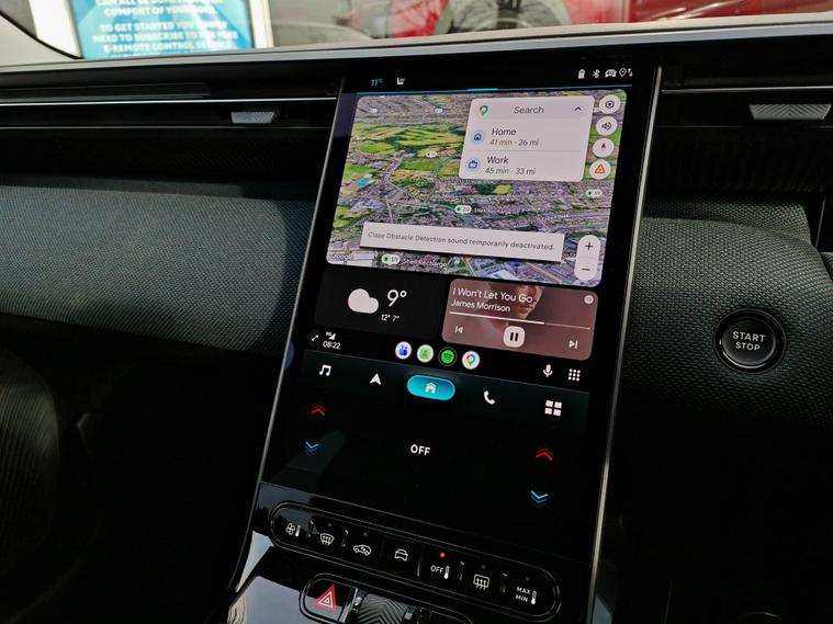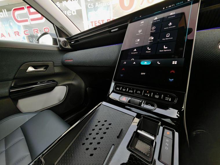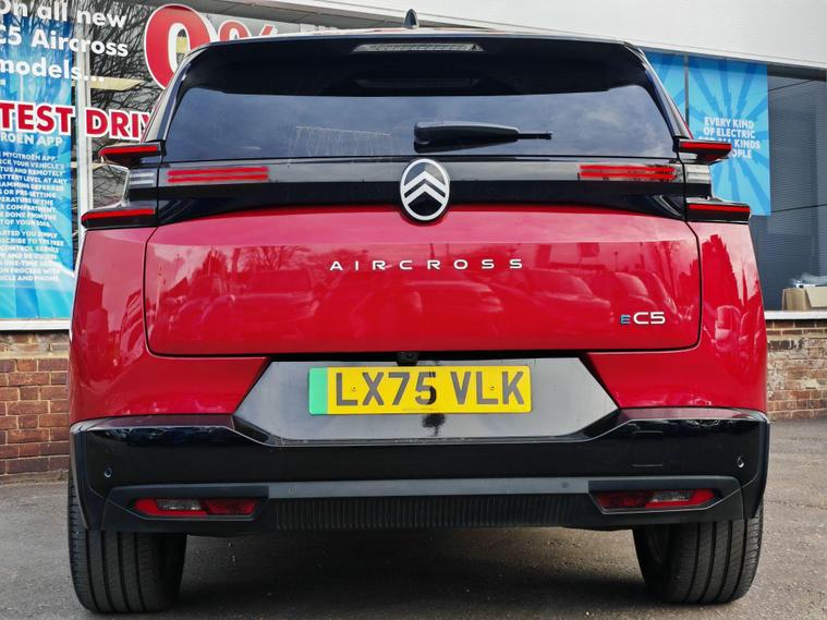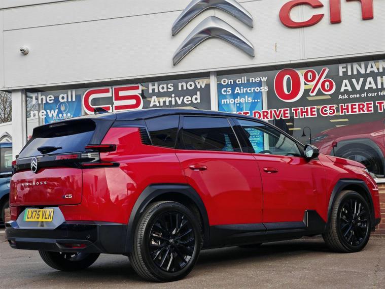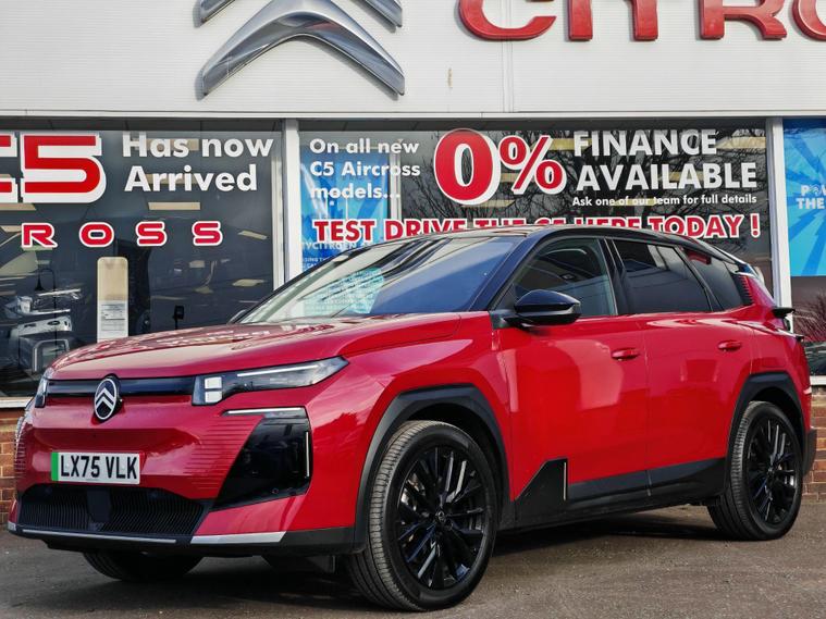 This 2025 Citroen e C5 Aircross Comfort Range MAX is a superb example, having had only one owner from new. This electric SUV offers a generous battery total capacity of 80 kWh, providing a maximum range of 305 miles when new. Charging is convenient, with a full charge achievable at home using a 7kW charger in approximately 9 hours, and a rapid charge to 80% taking just 40 minutes at a public charging station. The MAX trim level comes equipped with a striking Two Tone Perla Nera Black Roof and the comprehensive Techno Pack, which includes Blind Spot Assistance and a heated steering wheel for added comfort and safety.Further enhancing the driving experience are the Extended Head Up Display, featuring a clear Head Up Display, and the innovative Waterfall Screen with 3D Navigation System, complete with Android Auto, Apple CarPlay, and Bluetooth connectivity. For effortless journeys, Adaptive Cruise Control with Stop and Go Function and Speed Limiter is also included. The e C5 Aircross MAX stands out with its impressive 305 mile electric range, indicating its capability for longer trips compared to many other electric vehicles. Additionally, it boasts a large boot space, making it a practical choice for families and those needing ample storage.