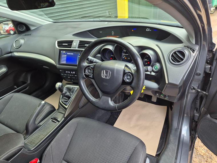 With only 58, 000 miles on the clock, this 2015 Honda Civic i VTEC SE Plus (Navi) presents a superb opportunity for a discerning buyer. This Euro 6 compliant model, powered by a responsive 1.8 litre petrol engine, has been cherished by just two owners. It comes equipped with desirable features such as dual zone climate control to keep everyone comfortable, a rear parking camera and front parking sensors to aid manoeuvring, and Bluetooth hands free telephone for seamless connectivity on the go. Automatic dusk sensing headlights ensure visibility is always optimal.This Honda Civic stands out with its impressive acceleration, reaching 0 to 62 miles per hour in a brisk 9.1 seconds, demonstrating its lively performance. The generous boot space offers practicality for everyday needs and longer journeys, while its low insurance group rating makes it an economical choice to own and run. These factors combined indicate that this Civic offers a superior ownership experience compared to many other vehicles in its class.