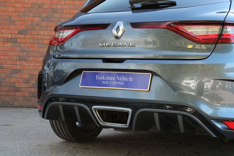 Finished in Titanium Grey metallic with full black RS cloth interior. Features include cup chassis pack (limited slip differential, red brake calipers, stiffer springs, dampers & anti-roll bar), Apple CarPlay and Android Auto, satellite navigation, 18” Estoril gun metal grey alloy wheels, rear park distance control, RS sport seats with integrated headrests, digital dual zone climate control with automatic air conditioning, Bluetooth connectivity with media streaming, DAB digital radio, RS Vision LED headlights, rain sensor, cruise control, RS drive, Renault multi-sense, 4Control, heated electric folding exterior mirrors, rear privacy glass, keyless entry, RS extended front and rear wheel arches, RS rear spoiler, red contrast stitching, voice control, multifunctional Nappa leather steering wheel, 6 speed manual transmission plus much more standard specification. This low mileage Megane RS is offered in excellent condition having covered 36200 miles from new. The car comes complete with a full service history consisting of the following - 17/02/2021 at 5682 miles, 28/01/2022 at 12078 miles, 19/01/2023 at 18847 miles, 12/12/2023 at 23986 miles, 09/12/2024 at 30043 miles and 27/01/2026 at 35491 miles.
