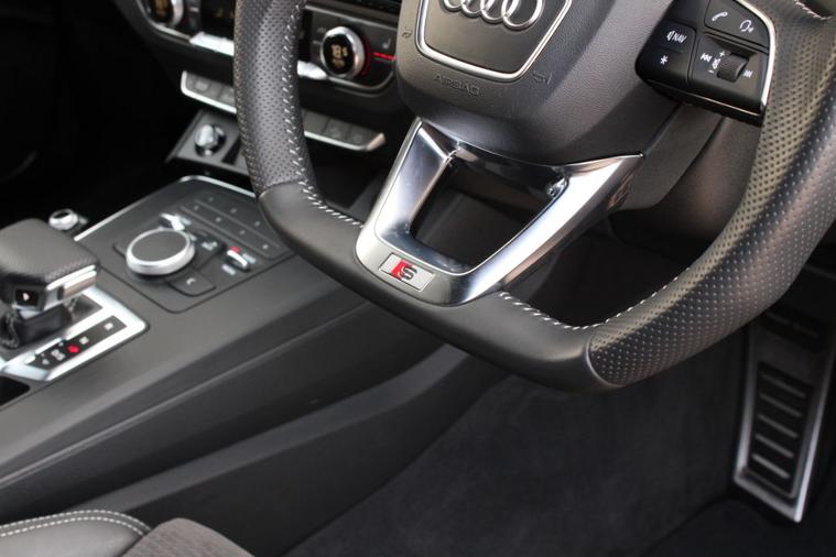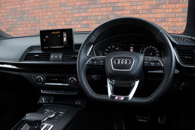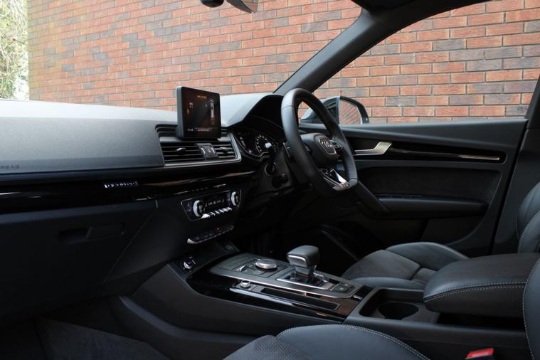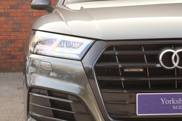 Finished in Daytona Grey pearl effect with black leather and alcantara interior. Features include titanium black styling package, Audi Smartphone Interface, MMI Navigation, 20” five-arm rotor design alloy wheels with gloss black finish, front and rear park distance control, heated front sport seats with electric lumbar support, deluxe three zone climate control with automatic air conditioning, Bluetooth connectivity with media streaming, DAB digital radio, automatic LED headlights with high beam assist, rain sensor, cruise control, Audi drive select with dynamic suspension, heated electric folding exterior mirrors, rear privacy glass, keyless start, dynamic rear indicators, piano black inlays, illuminated S door sills, roof rails, voice control, Audi roof rack, electric tailgate, multifunctional flat bottomed leather steering wheel with paddleshift, automatic S Tronic transmission plus much more standard specification. This Q5 45TFSI Black Edition is offered in excellent condition having covered only 34400 miles from new by its 1 former keeper. The car comes complete with a service history.