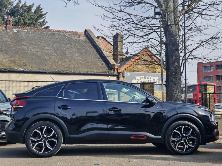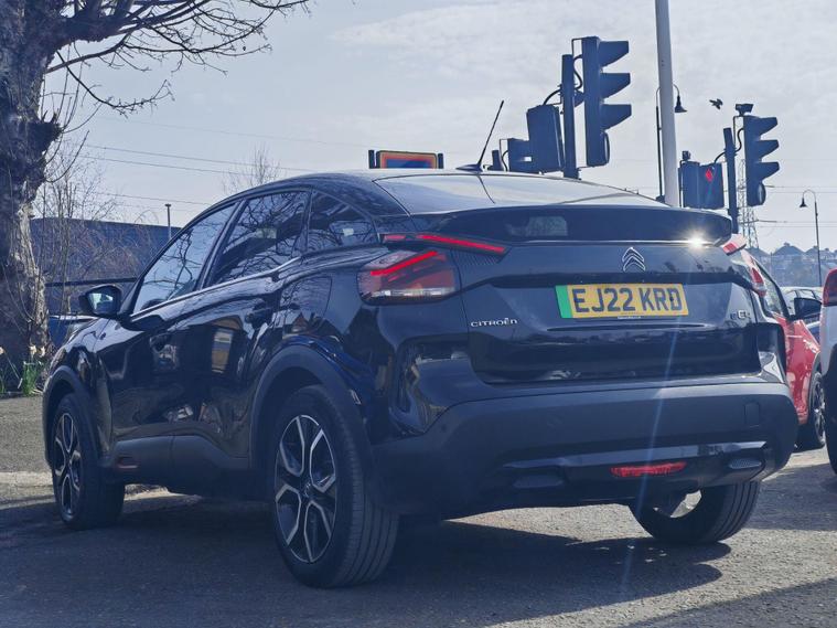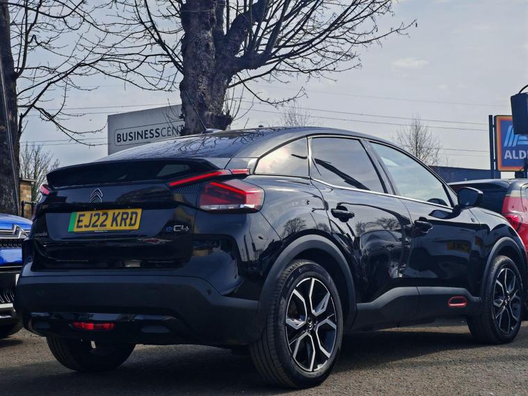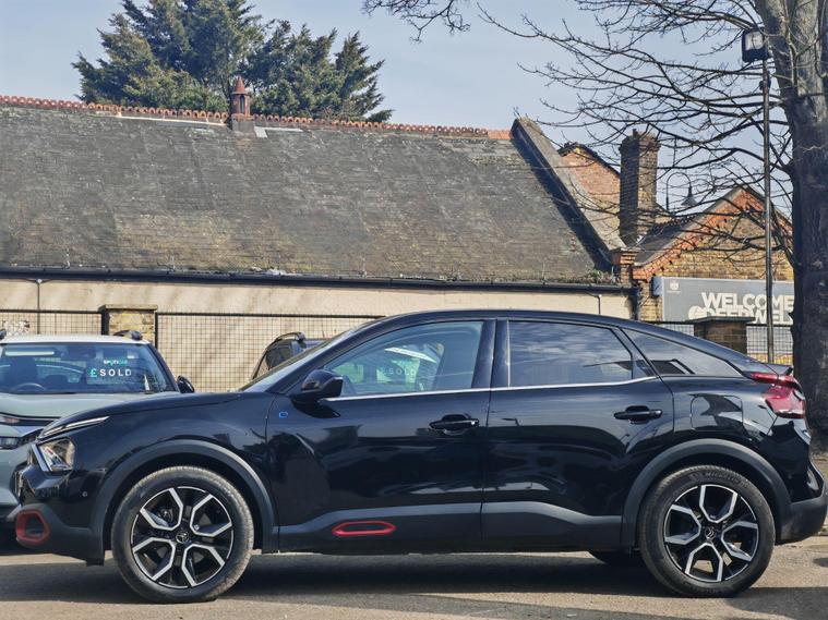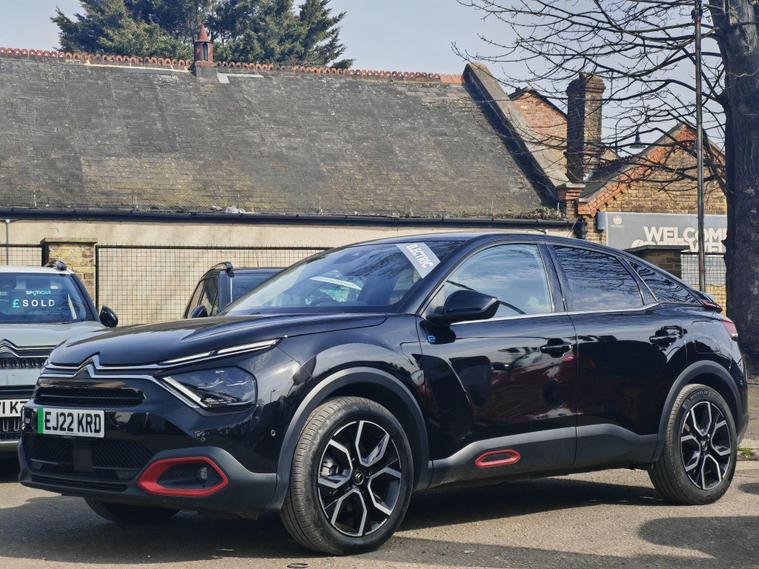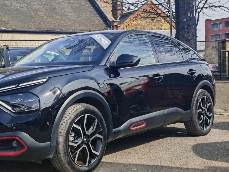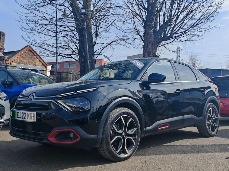 This 2022 Citroen e C4 Shine is an electric vehicle offering a compelling blend of style and modern technology. With a 50 kWh battery, it provides a maximum range of 217 miles when new, making it suitable for both daily commutes and longer journeys. Charging is convenient, with a full charge at home taking approximately 7 hours and 30 minutes using a 7kW charger, and a rapid charge to 80% achievable in just 30 minutes at a public charging station.The Shine trim level comes equipped with a range of notable features designed to enhance your driving experience. These include automatic dual zone air conditioning for perfect cabin climate, front and rear parking aids with lateral sensors and parking assistance for effortless manoeuvring, and a head up display to keep essential information in your line of sight. The 10 inch high resolution touchscreen user interface seamlessly integrates Android Auto and Apple CarPlay, alongside Bluetooth connectivity, while keyless entry and start add a touch of everyday convenience.