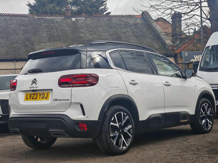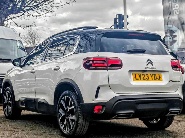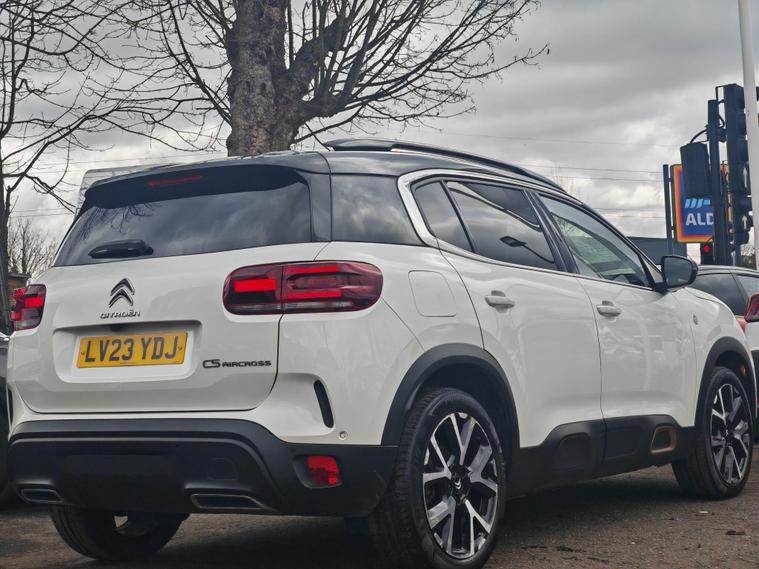 Discover this 2023 Citroen C5 Aircross C Series Edition, a stylish and practical SUV designed for modern life. Powered by an efficient 1.2 litre Euro 6 petrol engine, this model offers a compelling blend of performance and economy, achieving an impressive 49 miles per gallon. Inside, you'll find comfort and convenience with automatic dual zone climate control and keyless entry and start. The C Series Edition also boasts automatic headlights with welcome and goodbye lighting, ensuring you always have clear visibility.This Citroen C5 Aircross stands out with its generous boot space, perfect for all your luggage and shopping needs. The Drive Assist Pack, including blind spot assistance and adaptive cruise control, enhances your driving experience and safety. Enjoy the open air with the opening panoramic roof and electric sunblind, creating a bright and airy cabin. Furthermore, its low CO2 emissions indicate a more environmentally conscious choice compared to many other vehicles in its class.