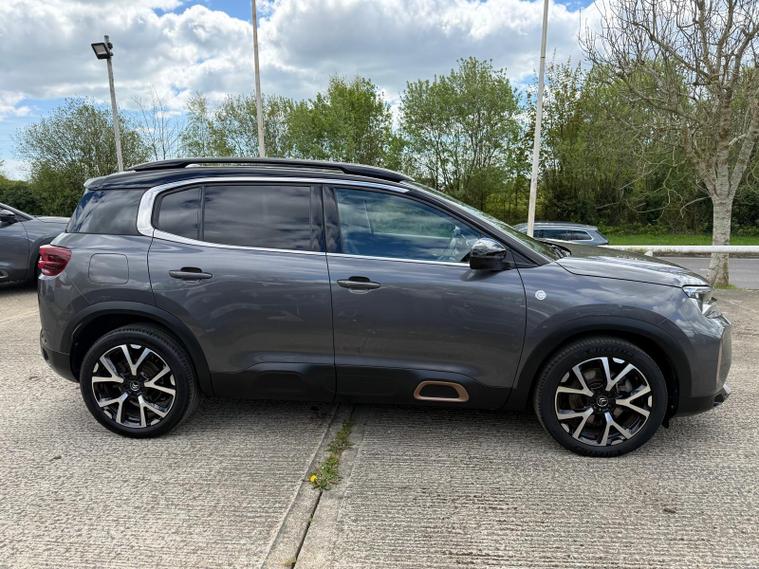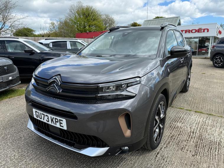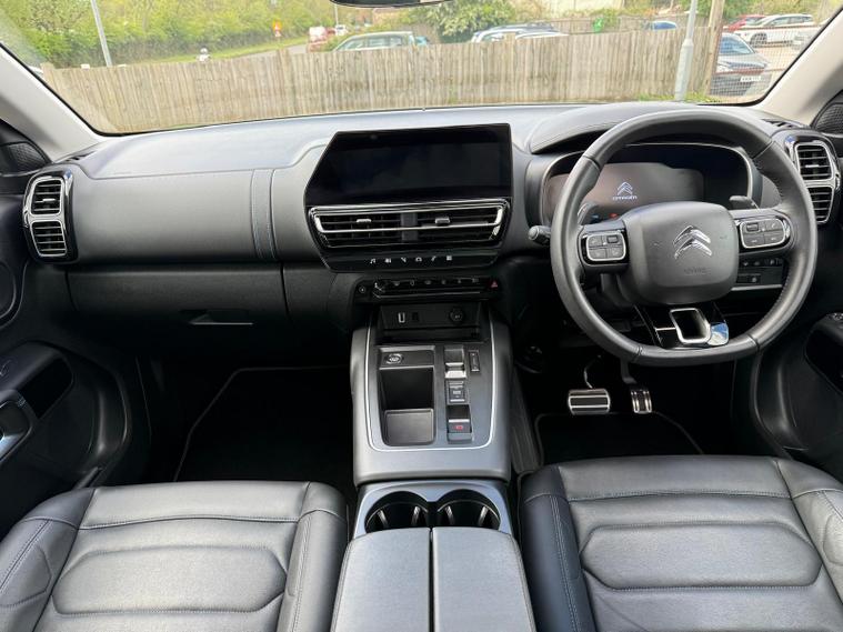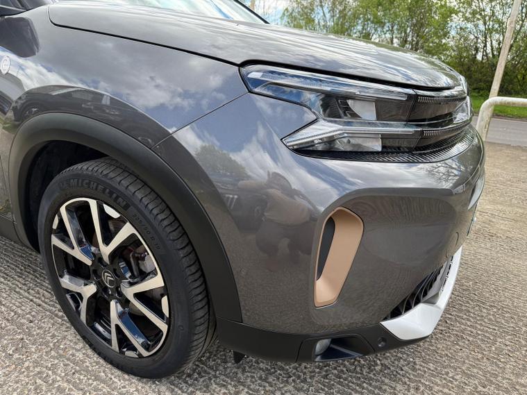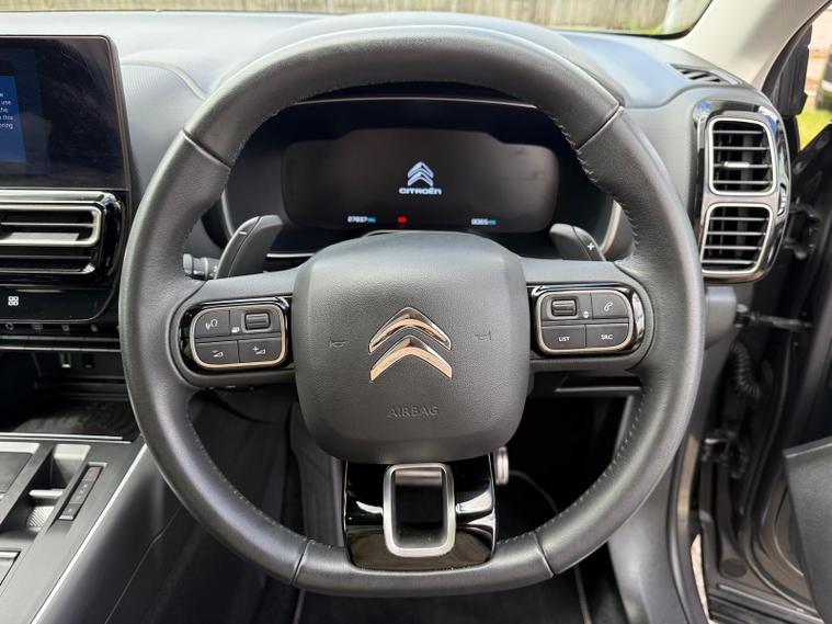 This 2023 Citroen C5 Aircross Shine is a superb example, having had only one owner since new. This stylish SUV is equipped with a responsive 1.2 litre petrol engine and meets Euro 6 emissions standards. Keyless entry and start allow for effortless access, while the City Camera Pack, featuring front and rear sensors along with a rear camera, makes parking a breeze. Enhancing safety and convenience are the electric, heated, and folding door mirrors, which include LED approach lighting and blind spot monitoring indicators. The Drive Assist Pack adds adaptive cruise control and further blind spot assistance, ensuring a more relaxed journey. Inside, you can connect your smartphone seamlessly with Citroen Connect Play, supporting both Android Auto and Apple CarPlay.This particular C5 Aircross Shine offers excellent value, boasting an impressive fuel economy of up to 46 miles per gallon, which is better than many similar vehicles. Its low insurance group rating also means more affordable ownership. Practicality is a strong suit, with a generously sized boot perfect for luggage or shopping. These highlights combined with its single owner provenance make this Citroen C5 Aircross a compelling choice for those seeking a well equipped and economical SUV.
