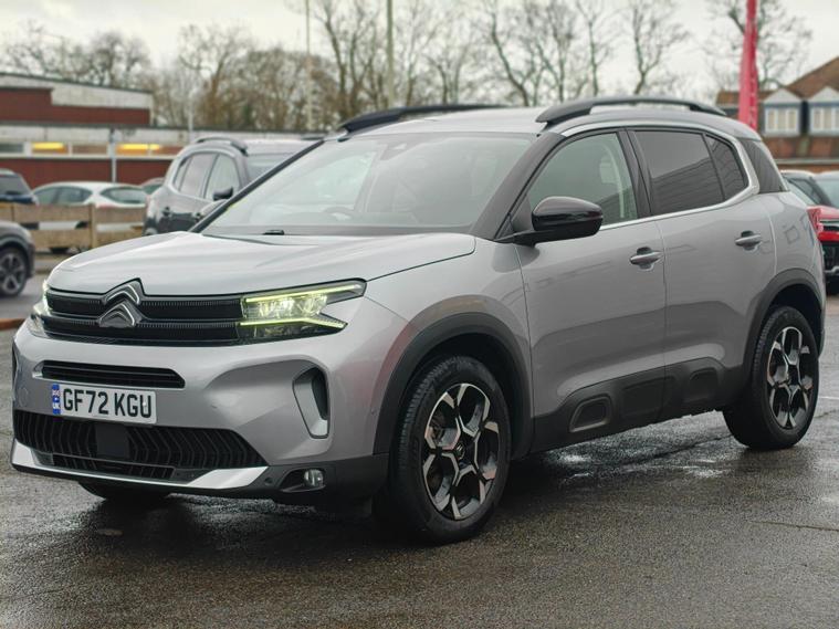 This 2023 Citroen C5 Aircross BlueHDi Shine presents an exceptional ownership proposition with its remarkably low mileage of just 12450 miles. As a single owner vehicle, this Euro 6 compliant 1.5 litre diesel SUV offers a refined driving experience. It comes equipped with Citroen Connect Play, seamlessly integrating your smartphone with Android Auto and Apple CarPlay. Convenience is further enhanced by keyless entry and start, while the City Camera Pack provides front and rear parking sensors along with a rear camera to assist with manoeuvring. The acoustic laminated windscreen includes automatic headlights that respond to rain and brightness, and you can enjoy consistent comfort thanks to the automatic dual zone climate control.This particular C5 Aircross stands out with its impressive fuel economy, achieving a highlight of 54 mpg, which is better than many similar vehicles. Its low CO2 emissions also contribute to its appeal. Practicality is a key strength, boasting a large boot space perfect for luggage or shopping. These combined highlights demonstrate how this Citroen C5 Aircross offers a compelling blend of efficiency, technology, and space for everyday life.