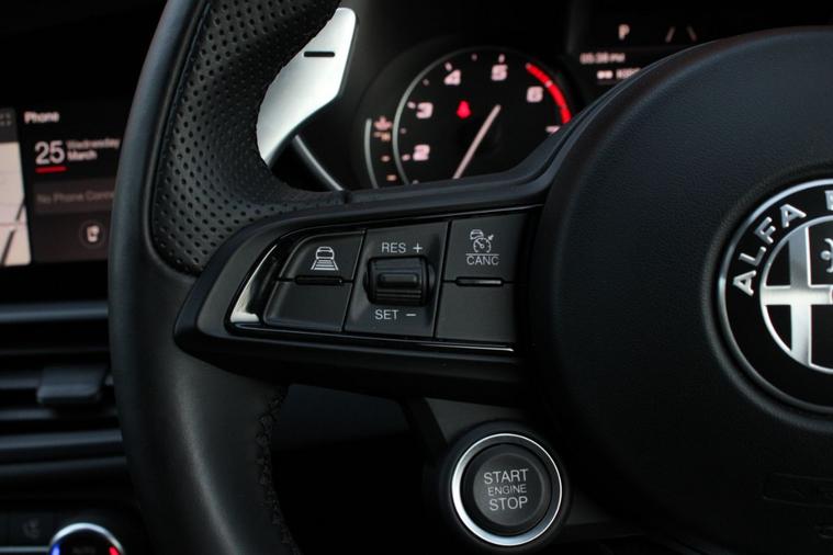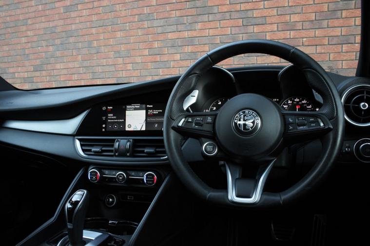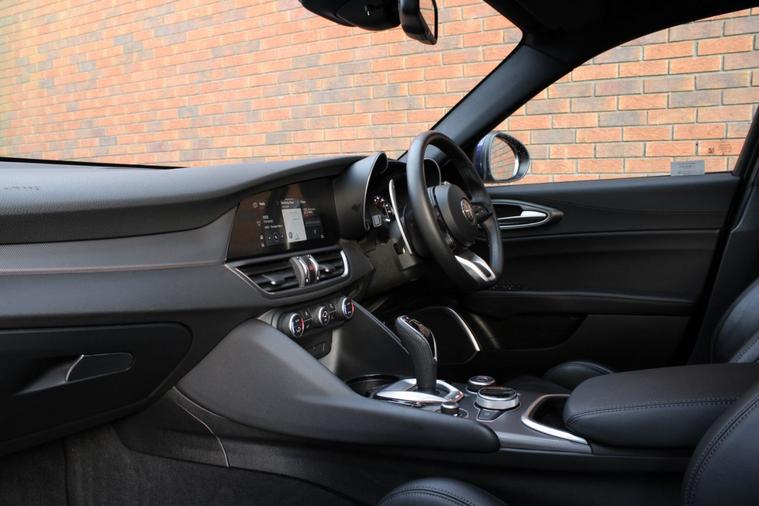 Finished in Anodized Blue metallic (£700) with full black sports leather interior. Features include Apple CarPlay and Android Auto, Alfa Connect navigation, cold weather pack (heated front seats, heated steering wheel & heated washer nozzles), convenience pack with keyless entry, parking assist pack (front and rear park distance control with rear view camera), 6-way electric front seats with driver memory function, digital dual zone climate control with automatic air conditioning, Bluetooth connectivity with media streaming, DAB digital radio, automatic bi-xenon headlights, rain sensor, active cruise control, Alfa DNA drive modes, lane departure warning, forward collision warning, electric folding exterior mirrors, rear privacy glass, wireless phone charging, black brake calipers, voice control, multifunctional leather steering wheel with paddleshift, automatic transmission plus much more standard specification. This Giulia Veloce is offered in excellent condition having covered 81900 miles from new by its 1 owner. The car comes complete with a service history.