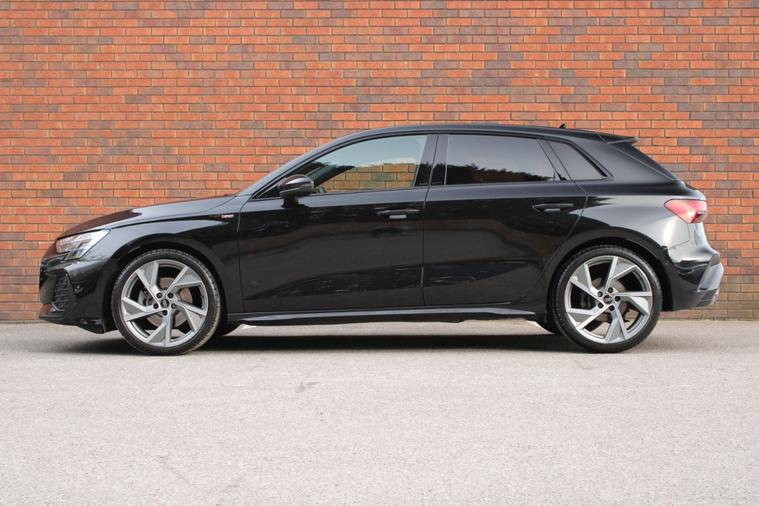 Finished in Mythos Black metallic with full black Twin leather interior. Features include Audi virtual cockpit plus, Apple CarPlay and Android Auto, MMI Navigation Plus, black styling package, 19” five-arm Y design alloy wheels in matt titanium, park assist pack with park assist plus, heated front sport seats with 4-way electric lumbar support, digital dual zone climate control with automatic air conditioning, Bluetooth connectivity with media streaming, DAB digital radio, automatic LED headlights with dynamic rear indicators, rain sensor, cruise control, Audi drive select, traffic sign recognition, lane departure warning, Audi Connect, heated electric folding exterior mirrors, rear privacy glass, keyless start, wireless charging, multi-coloured extended LED interior light pack, illuminated S door sills, voice control, multifunctional flat bottomed leather steering wheel with paddleshift, automatic S Tronic transmission plus much more standard specification. This A3 Black Edition is offered in excellent condition having covered 8900 miles from new by its 1 former keeper. The car comes complete with the reassurance of a remaining manufacturer’s warranty until March 2028.