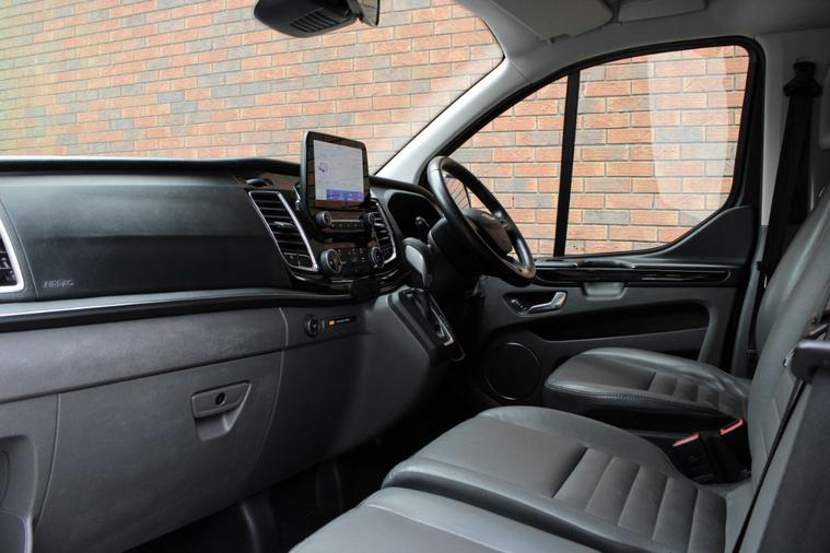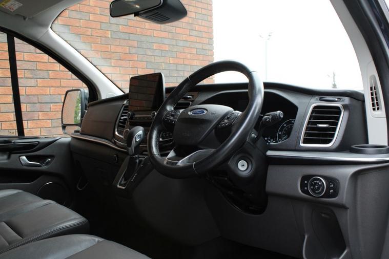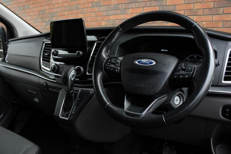 Finished in metallic blue with dark Palazzo leather interior. Features include ICE feature pack 25 with adaptive cruise control, SYNC satellite navigation, Apple CarPlay and Android Auto, 9 seats, front splitter and rear spoiler in gloss black, 20” OZ Racing alloy wheels finished in black, front and rear park distance control with rear view camera, heated front seats with driver electric adjustment, automatic headlights, traffic sign recognition, lane keeping system, heated front windscreen, drive modes, electric folding exterior mirrors, rear privacy glass, sliding rear passenger doors, rear passenger sun blinds, roof rails, voice control, multifunctional leather steering wheel, automatic transmission plus much more standard specification. This Tourneo Custom is offered in excellent condition having covered 85900 miles from new by its 1 owner. The van comes complete with a service history consisting of the following - 21/12/2022 at 33022 miles, 02/10/2024 at 67412 miles, 19/08/2025 at 81020 miles including the wetbelt replacement and 01/04/2026 at 85851 miles. Plus VAT.