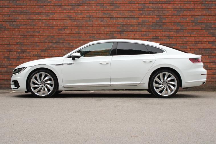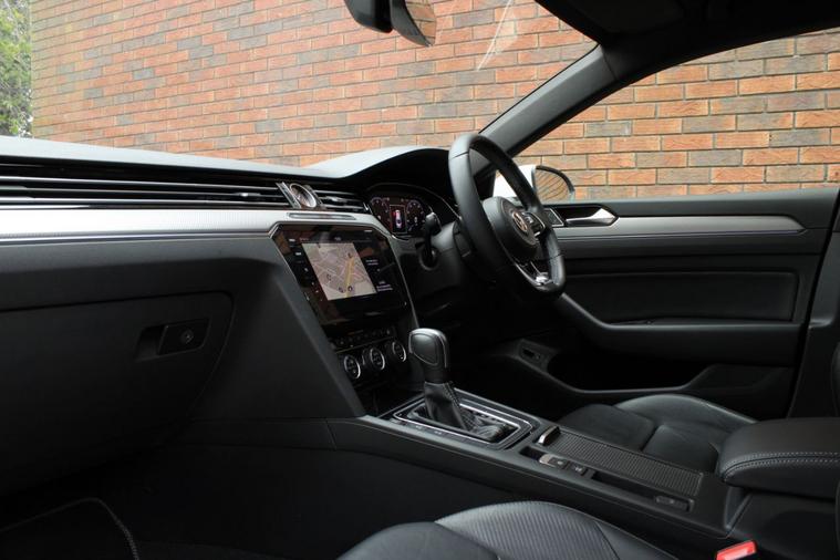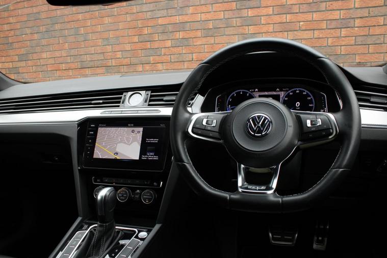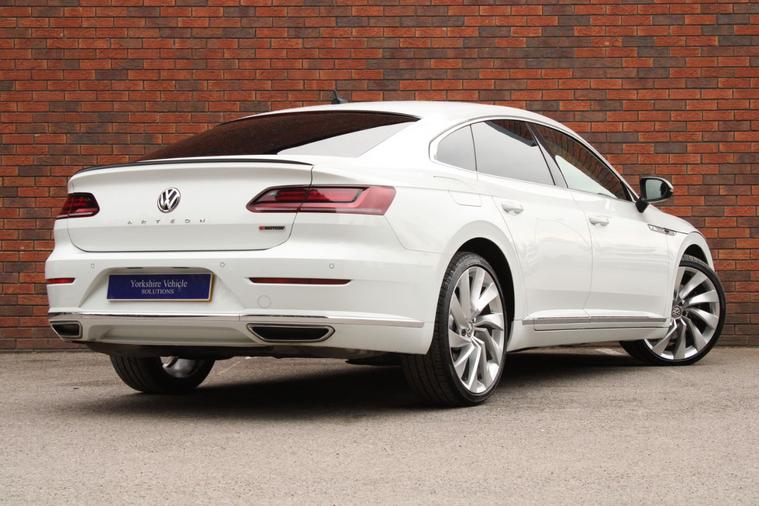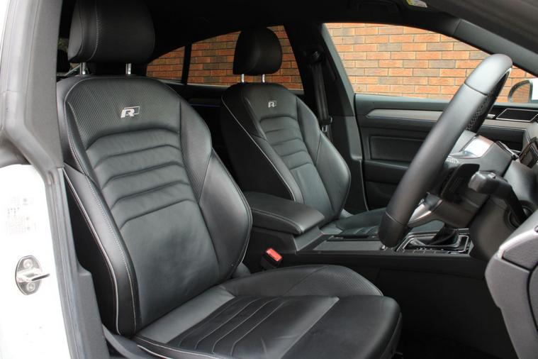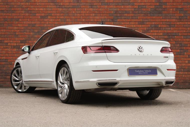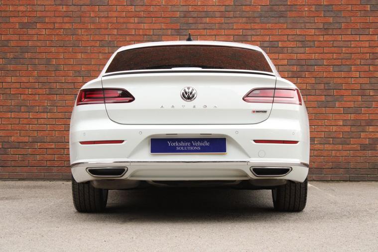Finished in Pure White with full black carbon optic Nappa leather interior. Features include 20” Rosario alloy wheels, digital driver’s display, Apple CarPlay and Android Auto, Discover satellite navigation, front and rear park distance control, heated front seats with driver ergo Comfort function, digital dual zone climate control with automatic air conditioning, Bluetooth connectivity with media streaming, DAB digital radio, automatic LED headlights, rain sensor, adaptive cruise control, dynamic chassis control with drive mode selection, dynamic road sign display, lane assist, front assist, heated electric folding exterior mirrors, rear privacy glass, keyless start, dynamic rear indicators, silver rise decorative inserts, voice control, multifunctional leather steering wheel with paddleshift, automatic DSG transmission plus much more standard specification. This Arteon 4Motion is offered in excellent condition having covered only 33500 miles from new by its 1 former keeper. The car comes complete with a service history.