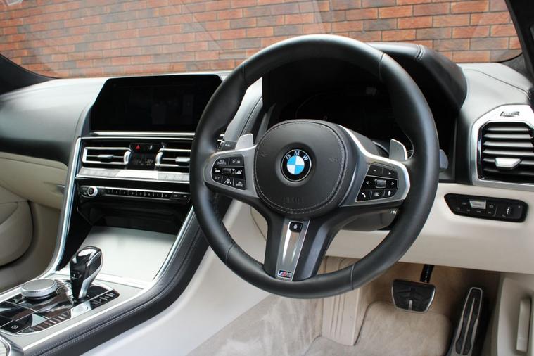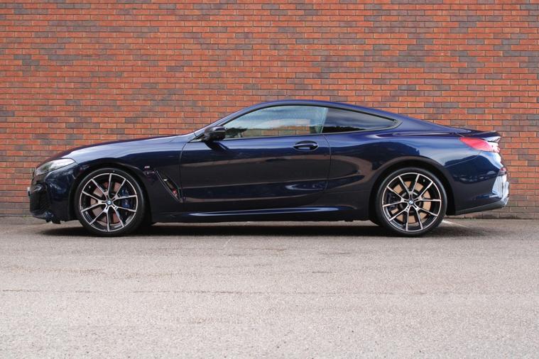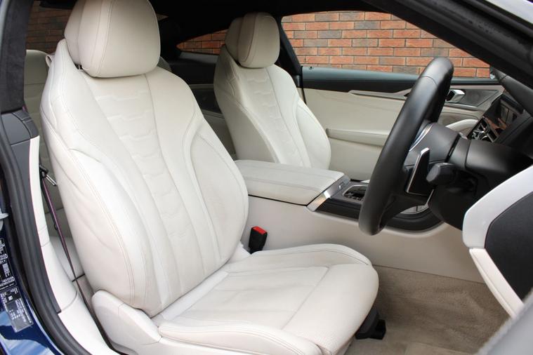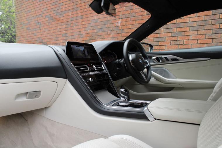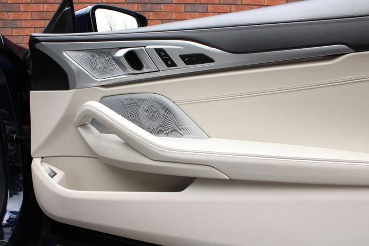 Finished in BMW Individual Tanzanite Blue metallic (£1065) with ivory white BMW Individual extended Merino leather interior. Features include technology plus pack (Bowers & Wilkins diamond surround sound system, active cruise control, parking assistant plus with 360-degree cameras & lane change assistant) (£6000), M Sport pro pack (20” Y spoke 728M alloy wheels, M Sport braking system, BMW Individual high gloss shadowline with extended contents, M seat belts & sun protection glazing) (£1900), comfort plus pack (front seat ventilation, heated armrests, heated steering wheel, soft close doors & BMW Individual anthracite alcantara roof lining) (£1800), head-up display, BMW Live Cockpit Professional with navigation, Apple CarPlay and Android Auto, heated electric front sport seats with memory function, digital dual zone climate control with automatic air conditioning, bluetooth connectivity with media streaming, DAB digital radio, BMW adaptive LED headlights with high beam assistant, rain sensor, adaptive M suspension with M Sport differential, climate comfort windscreen, heated electric folding exterior mirrors, comfort access system, wireless charging, aluminium mesh effect interior trim, interior ambient lighting, voice control, electric tailgate, multifunctional leather steering wheel with paddleshift, automatic transmission plus much more standard specification. This highly specified 840i has £10, 765 worth of options and is offered in excellent condition having