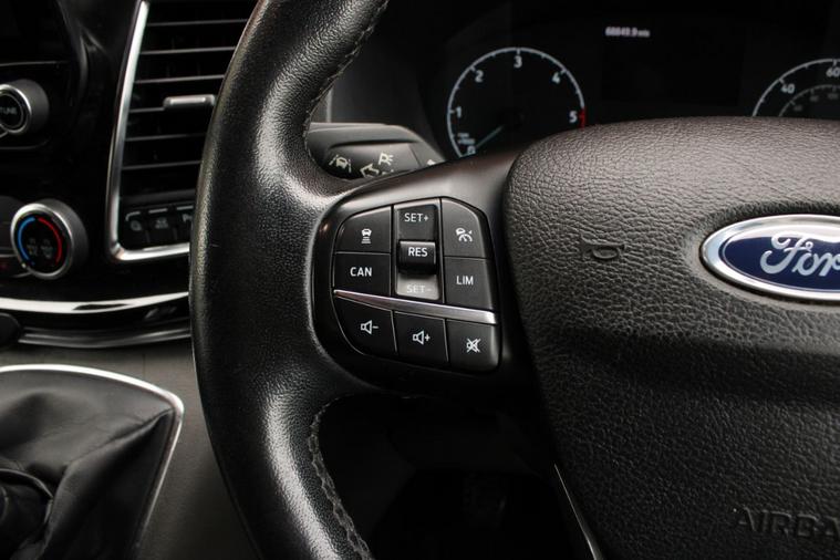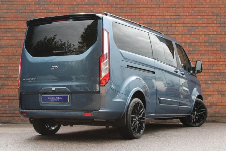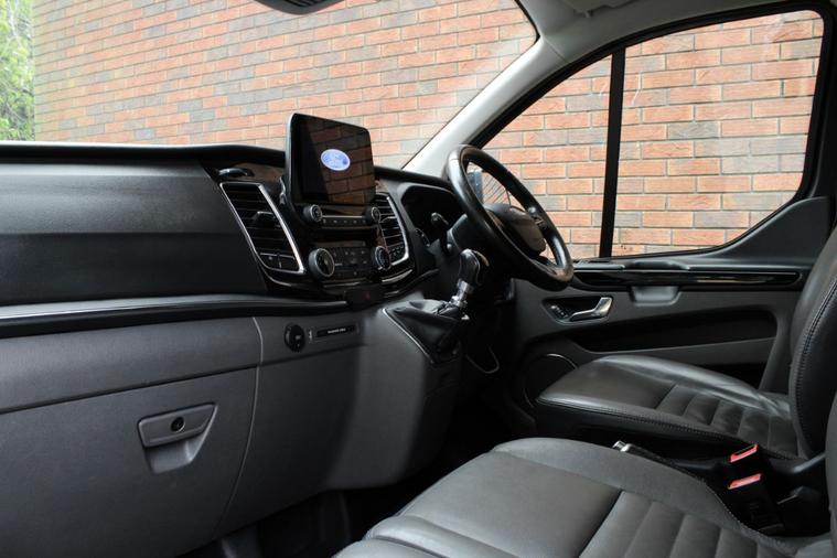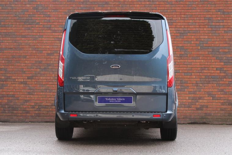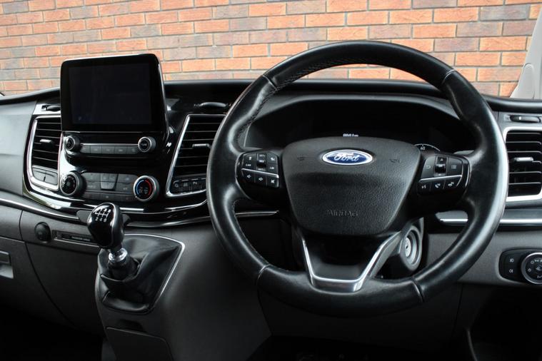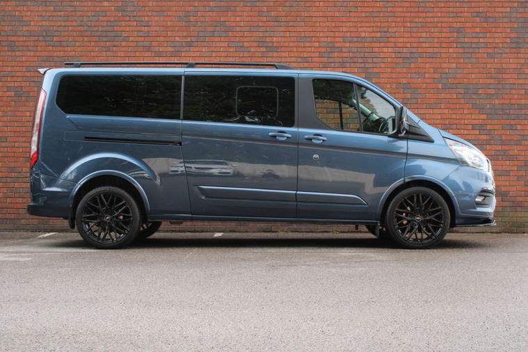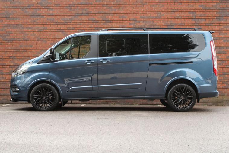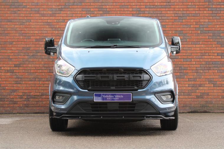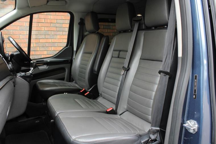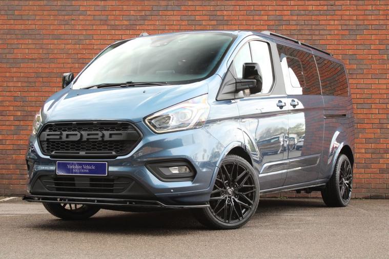 Finished in metallic blue with dark Palazzo leather interior. Features include ICE pack 25 with adaptive cruise control, SYNC satellite navigation, Apple CarPlay and Android Auto, front splitter and rear spoiler in gloss black, 20” multispoke alloy wheels finished in gloss black, front and rear park distance control with rear view camera, heated front seats with driver electric adjustment, air conditioning, 9 seats, Bluetooth connectivity with media streaming, DAB digital radio, automatic headlights with LED daytime running lights, traffic signs, lane keeping aid, drive modes, heated front windscreen, electric folding exterior mirrors, rear privacy glass, rear passenger sun blinds, driver’s armrest, roof rails, voice control, multifunctional leather steering wheel, 6 speed manual transmission plus much more standard specification. This Tourneo Custom is offered in excellent condition having covered 68900 miles from new by its 1 owner. The van comes complete with a service history. Plus VAT.