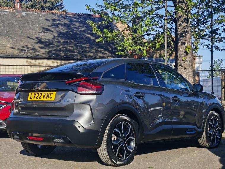 This 2022 Citroen e C4 Shine is a superb example, boasting a single owner and a remarkably low mileage of just 20, 000 miles for its age. As a fully electric vehicle, it offers a substantial battery capacity of 50 kWh, providing a maximum range of 217 miles when new. Charging is convenient, with a full charge at home taking approximately 7 hours and 30 minutes using a 7kW charger, and a rapid charge to 80% achievable in just 30 minutes at a public charging station. This e C4 comes with a 12 month warranty and a 12 month MOT provided on purchase, alongside a full service history, ensuring peace of mind.The Shine trim level is well equipped with notable features designed to enhance your driving experience. These include front, rear, and lateral parking aids with assistance sensors, making manoeuvring effortless. The 10 inch high resolution touchscreen user interface seamlessly integrates Android Auto and Apple CarPlay, alongside Bluetooth connectivity. For improved visibility and safety, LED headlights are fitted, and the automatic dual zone air conditioning ensures a comfortable cabin temperature. Furthermore, active blind spot detection provides an extra layer of safety by alerting you to vehicles in your blind spots, setting this e C4 apart from others.