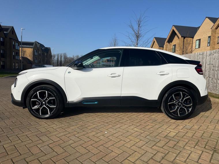 This 2023 Citroen e C4 Shine Plus presents an exceptional ownership proposition with its remarkably low mileage of just 11318 miles, a testament to its careful single owner. As a fully electric vehicle, it boasts a 50 kWh battery offering a maximum range of 219 miles when new, and benefits from Citroen manufacturer approval. Charging is convenient, with a full charge at home taking approximately 7 hours and 30 minutes using a 7kW charger, while rapid public charging can achieve 80% capacity in as little as 30 minutes. This Shine Plus model is equipped with a 10 inch high resolution touchscreen featuring Android Auto, Apple CarPlay, and Bluetooth, alongside wireless smartphone charging. Comfort is enhanced by electrically heated front seats and a head up display, while the highway driver assist system includes adaptive cruise control for more relaxed journeys.The generous boot space in this e C4 ensures practicality for everyday needs and longer trips. The combination of its electric powertrain, advanced technology, and comfort features, such as the heated seats and head up display, clearly sets this vehicle apart from others. The inclusion of wireless smartphone charging and seamless integration with Android Auto and Apple CarPlay further enhance the user experience, making this a well appointed and efficient choice for modern driving.