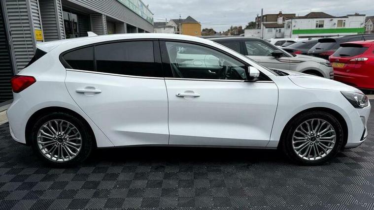 With only one previous owner and a full service history, this 2019 Ford Focus Titanium X is a great choice. This Focus is the T Titanium X variant, equipped with a 1.0L petrol engine and is Euro 6 emissions class compliant. The last service was completed at 31346 miles on 2025-08-05, and it comes with a 6-month warranty, MOT until 06/08/2026 with no advisories, and 2 keys for added peace of mind. It boasts several features, including DEATC - Dual-Zone Electronic Automatic Temperature Control, heated front seats for both the driver and passenger, keyless entry, front and rear parking sensors, Apple CarPlay, Android Auto, lane keep assist, pre-collision assist, speed sign recognition and automatic headlights.