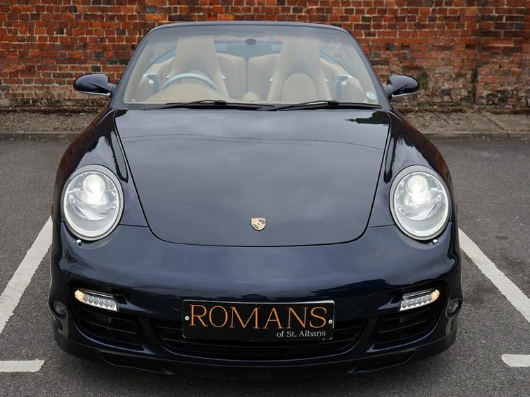 Romans Of St Albans are delighted to present to you this stunning Porsche 997 Turbo Tiptronic Cabriolet Finished in Midnight Blue with Luxor Beige Interior. This also comes with a hardtop making the car fit for all seasons. This Turbo has a range of optional extras to include: Sport Chrono Package, ParkAssist, Cruise control, Seat Heating, HomeLink, Three-spoke multifunction steering wheel with aluminium look trim and Porsche crest embossed on headrest. FINANCE AVAILABLE. A £299 admin fee applies to third party finance companies being used. FREE ON-SITE PARKING (ASK FOR DETAILS.) Romans after care package includes: Romans warranty for 6 months (12, 24 & 36 months are available), Main dealer cover available, Free breakdown cover for warranty duration, Full Romans service prior to delivery, 84 point vehicle inspection, 12 months MOT, Free Life time MOT when servicing with us (ask for details), Total value of package: £2000 - ALL INCLUSIVE IN THE PRICE. All of our clients have the added peace of mind that we have our own workshop facilities with free courtesy cars. Part Exchange very welcome, nationwide delivery also available. To avoid a wasted journey we highly recommend making an appointment, so call us now to get yours booked! Romans provide the highest of quality vehicles, and have at least 80 cars in stock at any one time. This means not all cars can be kept on site. This will also allow us to give you our fully undivided attention when viewing the vehicle you are interested in, WE ARE LOOKING TO BUY YOUR TOP SPEC, LOW MILEAGE, FULL SERVICE HISTORY PRESTIGE, SPORTS, AND 4X4 VEHICLES. GET MORE FOR YOUR VEHICLE BY EITHER SELLING TO US, OR ASKING US TO SELL YOUR VEHICLE FOR YOU. PRIVATE BUYERS WANT WARRANTIES, THEY WANT TO PART EXCHANGE, THEY WANT FINANCE - TAKE ADVANTAGE OF ALL OUR FACILITIES. CALL US NOW TO DISCUSS GETTING RID OF YOUR VEHICLE QUICKLY.