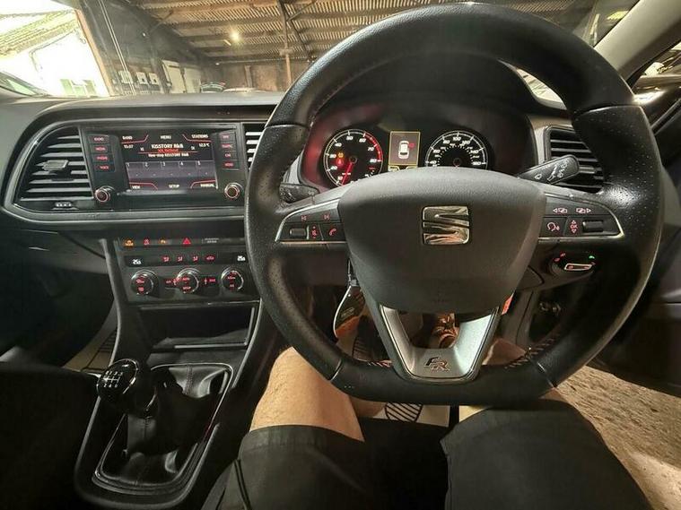- Steering Wheel - Flat-Bottomed Perforated Leather with Red Stitching and FR Logo