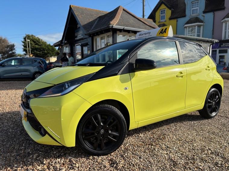 Stand out from the crowd with the Toyota AYGO 1.0 VVT-i x-cite 3 Yellow Bi-Tone ? a compact city car with bold personality and big attitude. Featuring a punchy and efficient 1.0-litre VVT-i petrol engine, it delivers low running costs and excellent fuel economy without compromising on fun. The striking yellow and black bi-tone exterior turns heads, while the stylish interior boasts a 7' touchscreen with DAB radio, Bluetooth, and smartphone integration. With a reversing camera, air conditioning, and sleek alloy wheels as standard, the AYGO x-cite 3 is packed with features and perfect for navigating busy urban streets with ease.