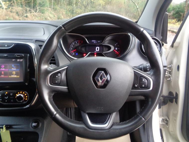 THIS GREAT RENAULT CAPTUR DYNAMIQUE S NAV TCE COMES WITH WARRANTED MILES AND SERVICE HISTORY . THE SPEC INCLUDES 17'' ALLOYS, CONTRAST BLACK ROOF AND MIRRORS, PARKING SENSORS, A LARGE 7'' MULTIFUNCTION TOUCH SCREEN DISPLAY WITH SAT NAV, DAB RADIO, USB/AUX, BLUETOOTH FOR MUSIC AND TELEPHONE CONNECTION, AUTO CLIMATE CONTROL AC, CRUISE CONTROL AND LIMITER, ECO DRIVING MODE, AUTO RAIN SENSOR, AUTO HEADLIGHTS, ELECTRIC WINDOWS FRONT AND REAR AND CENTRAL LOCKING, THIS CAR WILL COME WITH A BRAND NEW MOT ON PURCHASE, 3 MONTHS WARRANTY PARTS AND LABOUR AND 12 MONTHS AA BREAK DOWN COVER. A SPARE KEY IS SUPPLIED. NO ADMIN FEES.