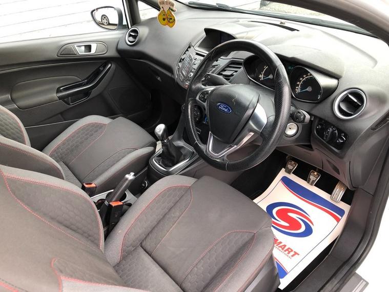 Genuine low mileage example of this stunning Fiesta ST-Line model in sought after Frozen White. Only £20 road tax for the year, low insurance group & excellent fuel economy. Benefits from Satellite navigation system, LED DRL headlights, Bluetooth telephone prep, USB media input, heated front screen, rear privacy glass & 17' Alloy wheels. Ideal small modern reliable hatchback. HPI CLEAR. MOT TILL AUGUST 2026, GOOD SERVICE HISTORY INC 6 STAMPS. REMOTE KEY. FULL DEALER FACILITIES INC 7 DAYS A WEEK OPENING HOURS. 3 MONTHS NATIONWIDE WARRANTY & 12 MONTHS FREE AA BREAKDOWN COVER INCLUDED. NO HIDDEN COSTS OR ADMIN FEES. VERY TIDY GENUINE LOW MILEAGE EXAMPLE. FIRST TO SEE WILL BUY!!