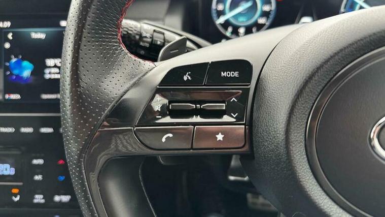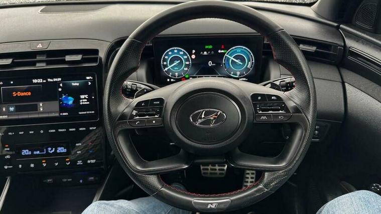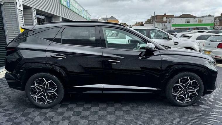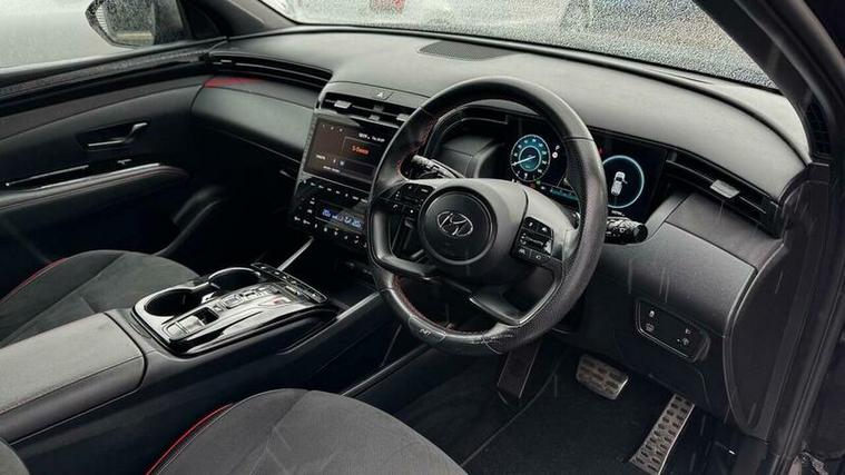 This 2021 Hyundai TUCSON h T-GDi N Line offers exceptional provenance, having had only one owner from new and boasting an MOT valid until August 2026 with no advisories, 6 months warranty and 2 keys. This stylish SUV is powered by an efficient 1.6 litre petrol hybrid engine, meeting Euro 6 emissions standards. Inside, you'll find a host of convenient features including Bluetooth connectivity, a wireless phone charging pad, Apple CarPlay, Android Auto and a rear parking camera complemented by front and rear parking sensors for effortless manoeuvring. The N Line trim adds a sporty touch, and the smart key system allows for keyless entry and engine start-stop button functionality.