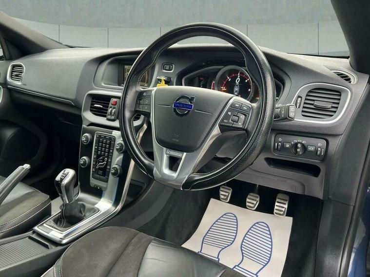 The V40's sporty 'R-Design' styling is perfectly complemented by its elegant Blue Colour paintwork and distinctive five-door layout. The interior is enhanced by premium Part Leather trim and specific R-Design Nubuck Sports seats, providing both excellent support and a high-quality feel that perfectly captures the car's dynamic character.