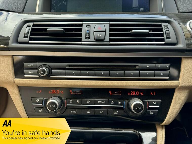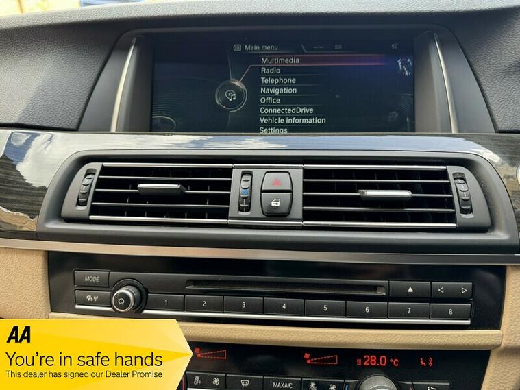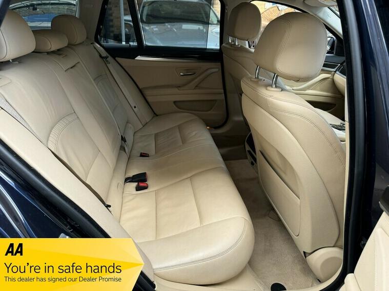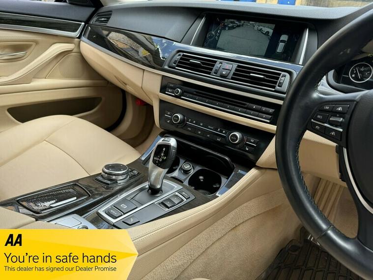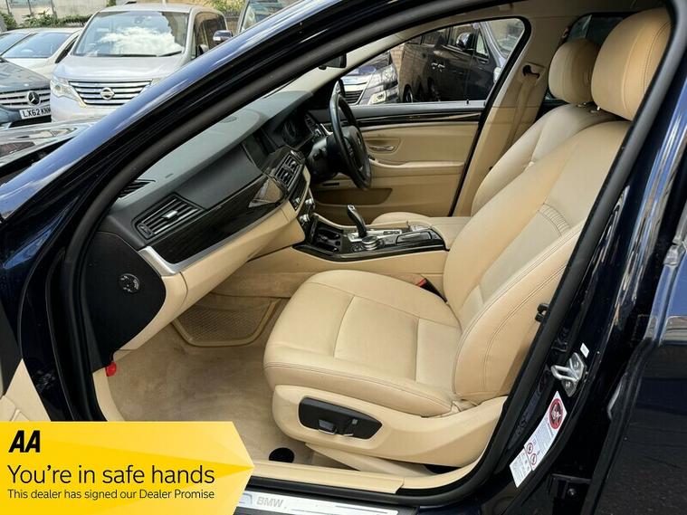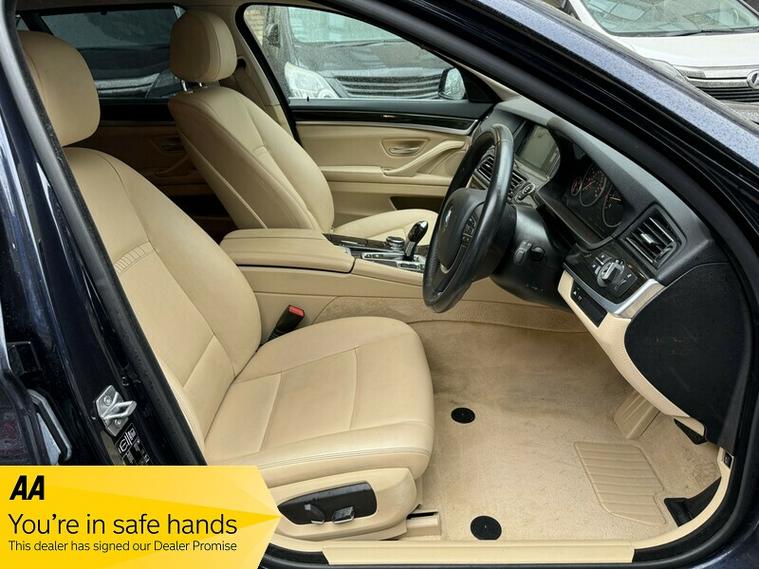 + FINANCE AVAILABLE+ FULL SERVICE HISTORY+MOT TILL 19/08/2026+1 YEAR COMPREHENSIVE WARRANTY INCLUDING PRICE FOR COMPLETE PEACE OF MIND+1 YEAR A A BREAK DOWN COVER+FULL LEATHER+LANE ASSIST+REVERSING CAMERA+XENON HEAD LIGHTS+PARKING SENSORS+KEY LESS ENTRY AND KEY LESS GO+HEATED FRONT SEATS+ELECTRIC TAIL GATE+ELECTRIC SEATS+ This 2014 BMW 5 Series 520i Luxury boasts an exceptionally low mileage of just 43, 000 miles, supported by a full dealership service history, with the most recent service completed on 2025-09-10. This Euro 6 compliant 2.0L petrol engine vehicle is ready for the road with its MOT valid until August 2026. Experience the convenience of Comfort Access with Smart Opener for keyless entry, and enjoy effortless journeys with Active Cruise Control featuring a Stop and Go function. Inside, the Luxury trim is enhanced by BMW Individual Piano Black interior trim and Adaptive Headlights for improved visibility., , The impressive acceleration of 0-62mph in 8.3 seconds offers a responsive driving experience, while the electric front seat adjustment with driver memory ensures personalised comfort. This BMW 5 Series also offers generous boot space, making it practical for everyday use and longer trips. These carefully selected features and its low mileage for its age demonstrate a higher standard of care and specification compared to other vehicles of its kind.