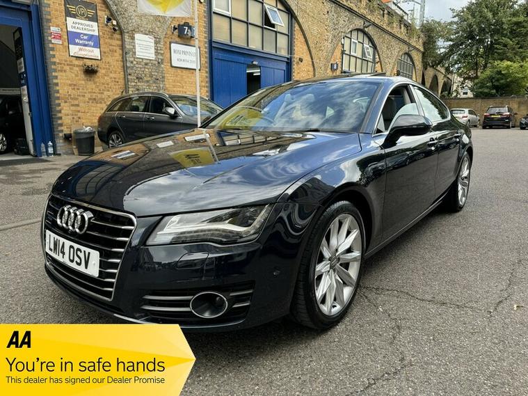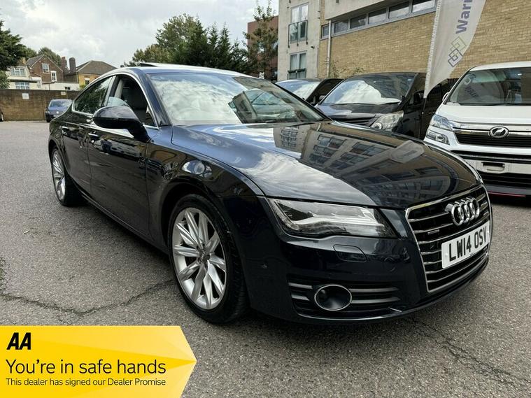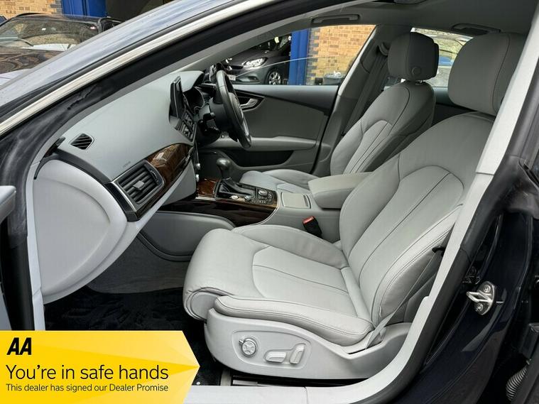 + FINANCE AVAILABLE+ ONLY COVERED 30000 MILES WARRANTED AND VERIFIED+3 SETS OF KEYS+1 YEAR COMPREHENSIVE WARRANTY INCLUDING PRICE FOR COMPLETE PEACE OF MIND, 1 YEAR A A BREAK DOWN COVER+ MOT TILL 18/08/2026+1 YEAR A A BREAK DOWN COVER+FULL LEATHER TRIM+SUNROOF TILT AND SLIDE+KEY LESS ENTRY AND KEY LESS GO+MEMORY FRONT SEATS+XENON HEAD LIGHTS+360 CAMERA+ PARK ASSIST+FRONT AND REAR HEATED SEATS+KEY LESS ENTRY AND KEY LESS GO+4 ZONE CLIMATE CONTROL+This 2014 Audi A7 TFSI V6 SE boasts exceptionally low mileage for its age, having covered just 30, 892 miles. Serviced recently on 2025-09-10 at 30, 892 miles, this Four Wheel Drive model comes with an MOT valid until August 2026. The SE trim level includes a wealth of desirable features, such as the Advanced Key with Hands Free Boot Opening System for effortless access, and an Electric Sunroof for an open and airy cabin. For enhanced driving comfort and safety, it is equipped with Adaptive Cruise Control featuring Side Assist and Active Lane Assist, along with the Audi Parking System Advanced which incorporates a reversing camera and front sensors. Furthermore, the comfort seats are heated for both front and rear occupants, ensuring a pleasant journey in all conditions., , The performance of this Audi A7 is equally impressive, with a powerful 3.0 litre petrol engine enabling it to accelerate from 0 to 62mph in a swift 5.6 seconds. This acceleration figure highlights its dynamic capability, setting it apart from many other vehicles in its class. The generous boot space offers practicality for everyday use and longer trips, making it a versatile choice. The combination of its low mileage, comprehensive service history, and advanced features like the hands free boot opening and adaptive cruise control, demonstrate a level of care and specification that elevates this A7 above the ordinary
