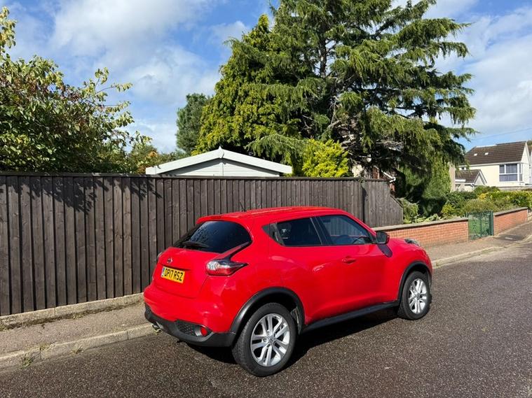 Nissan Juke 1.6 N-Connecta CVT Xtronic Automatic 5 Door Hatchback in Red. Registered 30th of June 2017 on a 17 plate.