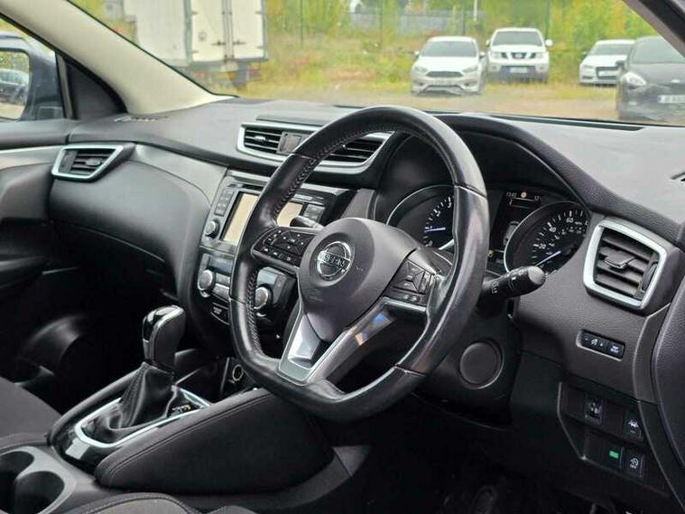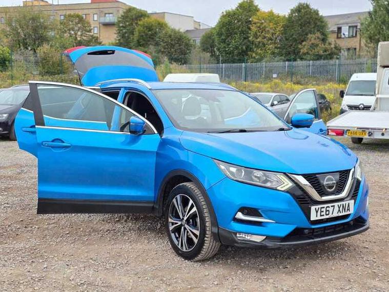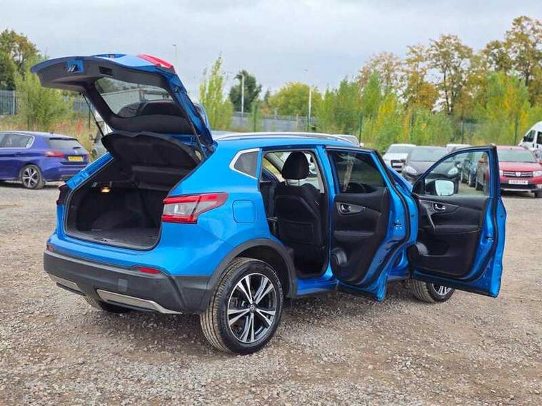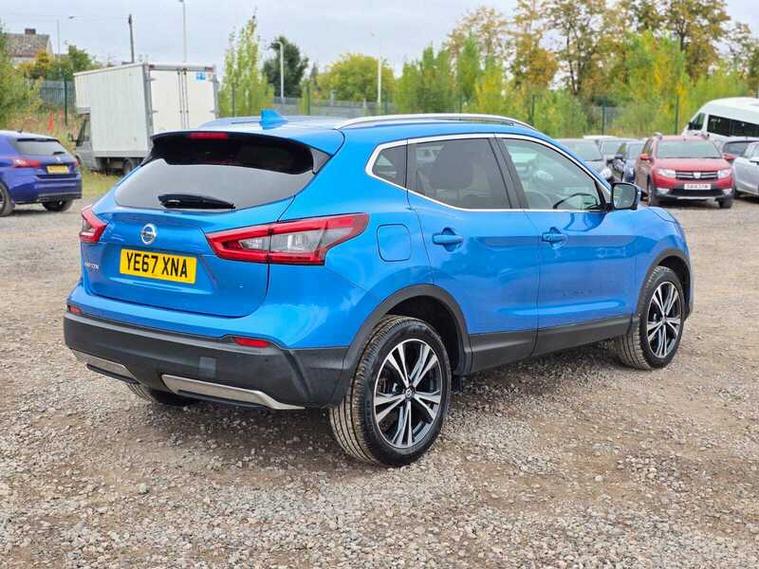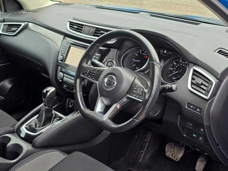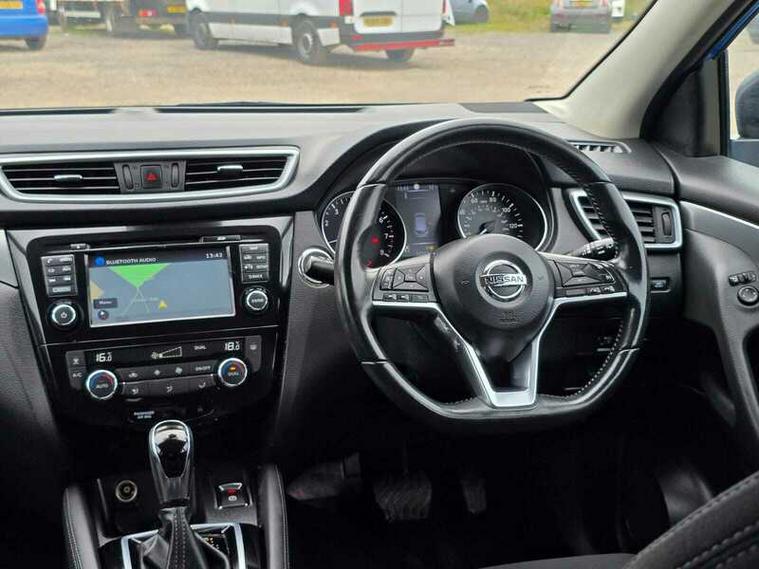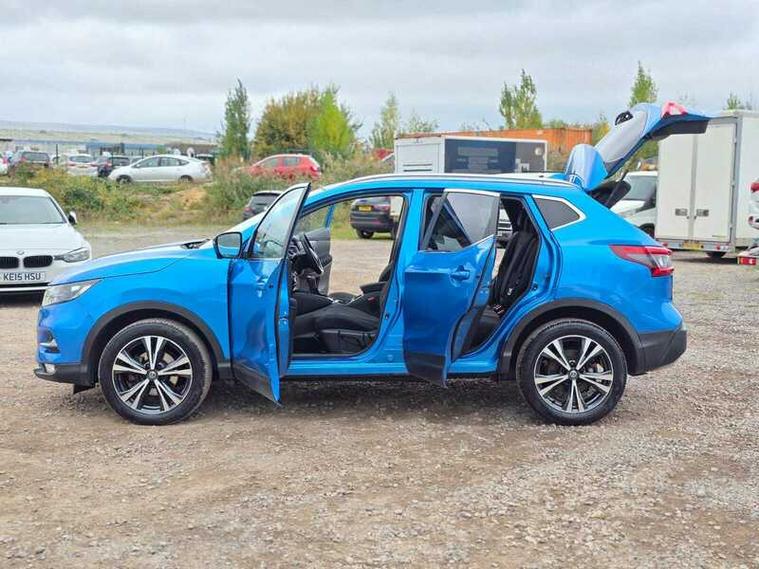 This car comes with 5 seats, Blue, 2 owners, 18in Alloy Wheels - Bi-Colour, 3 Height Adjustable Rear Headrests, 6 Speakers, 60-40 Split Rear Folding Seats, AM-FM Radio and CD Player, AUX Socket, Advanced Drive Assist Display - 5in TFT Coloured Screen, Ambient Lighting Centre Console, Anti Dazzle Rear View Mirror, Auto Wipers, Bluetooth, Body Coloured Door Mirrors, Body Coloured Handles, Boot Light, Carbon Graphite Dash Trim, Chrome Glass Surround, Chrome Interior Door Handles, Cruise Control with Speed Limiter, DAB Digital Radio, Daytime Running Lights Dip Function When Turn Signal Applied, Driver Seat Height Adjustment, Driver-Passenger-Side and Curtain Airbags, Drivers Seat with Manual Lumbar Support, Dual Zone Climate Control Air Conditioning, ESP ABS EBD and Brake Assist, Electric Auto-Folding Door Mirrors, Electric Parking Brake, Electric Speed-Sensitive Power Steering, Front 12v Power Sockets x2, Front Centre Console and Armrest, Front Seat Belts with Load Limiter and Pretensioners, Front and Rear Door Pockets with Drink Holders, Front and Rear Electric Windows, Front and Rear Seatbelt Warning, Halogen Headlamps, Headlights - High Beam Assist, Height Adjustable Front Head Restraints, Height Adjustable Front Seatbelts, Hill Start Assist, ISOFIX Child Seat Anchoring Points - Rear x2, Intelligent Around View Monitor, Intelligent Auto Headlight, Intelligent Emergency Braking, Intelligent Key, Interior Ambient Lighting, LED Signature Daytime Running Lights, LED Turn Indicator on Door Mirrors, Lane Departure Warning, Leather D Shaped Steering Wheel, Leather Gear Lever, Leather Knee Pad, Luggage Board System, Matt Silver Roof Rails, Monoform Front Seats with Plastic Backboard, Nissan Anti Theft System Immobiliser, Nissan Chassis Controls, NissanConnect Evo Touchscreen Navigation and Entertainment System, One Touch 4 x Auto Windows with Illuminated Switches, Outside Temperature Sensor, Parcel Shelf - Stow Function Under Luggage Board, Parking Sensor - Front, Passenger Airbag Deactivation System, Passengers Seat with Manual Lumbar Support, Pollen Filter, Privacy Glass, Puncture Repair Kit, Rear Parking Sensors, Rear Roof Spoiler, Rear View Camera, Rear Wiper with Reverse Link, Remote Central Locking, Seats - Passengers Height Adjustment, Selectable Steering - Normal or Sport, Shark Fin Antenna, Smart Vision Pack, Smartphone App Integration, Start Push Button, Steering Wheel Mounted Audio Controls, Synthetic Leather Wrapped Door Handle with Contrasting Stitching, TPMS - Tyre Pressure Monitoring System, Tech Pack, Thatcham Category 1 Alarm, Tilt and Telescopic Adjustable Steering Wheel, Traffic Sign Recognition, Trip Computer, USB Port, Underbody Vortex Generators,