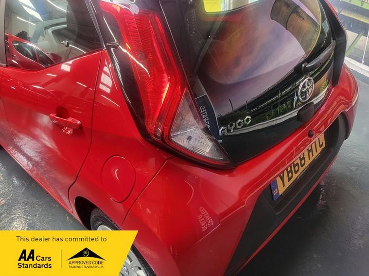 The 2018 Toyota Aygo X-Play VVT-i is a chic and economical city car that blends modern styling with Toyota?s trademark reliability and low running costs. Powered by a 1.0-litre three-cylinder VVT-i petrol engine producing 71 bhp, it offers lively and responsive performance that?s perfectly suited to urban driving. It accelerates from 0?62 mph in 13.8 seconds and reaches a top speed of 99 mph, while remaining highly economical, returning up to 68 miles per gallon on the combined cycle with CO? emissions of just 93 g/km, making it very cheap to run and road tax friendly.The X-Play trim level strikes a perfect balance between style and practicality. On the outside, it features Toyota?s distinctive ?X? front design, body-coloured bumpers and mirrors, LED daytime running lights, and 15-inch wheels with smart trims. Its compact dimensions and light steering make it easy to park and manoeuvre, while its sharp, youthful design gives it strong kerb appeal.Inside, the Aygo X-Play is well equipped for a small car. Standard features include air conditioning, a leather-trimmed multifunction steering wheel, electric front windows, remote central locking, and a 7-inch touchscreen infotainment system with Bluetooth, USB and AUX connectivity, plus smartphone integration via Apple CarPlay and Android Auto. The cabin is bright and modern, with comfortable seating for four and clever storage solutions. Despite its small footprint, the Aygo remains practical, with a useful 168-litre boot that can be expanded when the rear seats are folded.Safety is also a priority, with the Aygo X-Play offering multiple airbags, ABS, traction control, electronic stability control, tyre pressure monitoring and ISOFIX child seat mountings as standard. Toyota?s excellent reliability record adds further peace of mind, ensuring low maintenance costs and long-term dependability.Overall, the 2018 Toyota Aygo X-Play VVT-i is a fun, stylish and efficient city car that offers modern features, excellent fuel economy and Toyota?s renowned build quality. Compact yet practical, it is an ideal choice for new drivers, urban commuters or anyone looking for affordable motoring with a touch of flair.