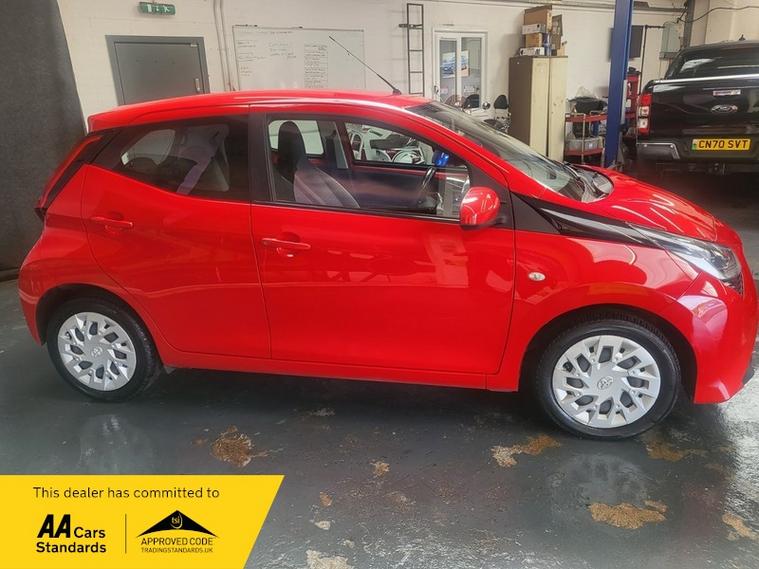 The Toyota Aygo X-play VVt-I will come with 12 months MOT, 3 Months Warranty, and 12 months breakdown cover. The Toyota Aygo X-play has a great spec that includes Apple car play, ABS brakes, Air conditioning, Alloy wheels, Central locking, Electric windows, Power assisted steering, Adjustable steering, Bluetooth, Brake assist, Cup holders, Daytime running lights, Electric mirrors, Folding rear seats, Front and side impact airbags, Front fog lights, Heated rear windscreen, ISOfix anchor points, Parking sensors, Steering wheel controls, Traction control and much more.