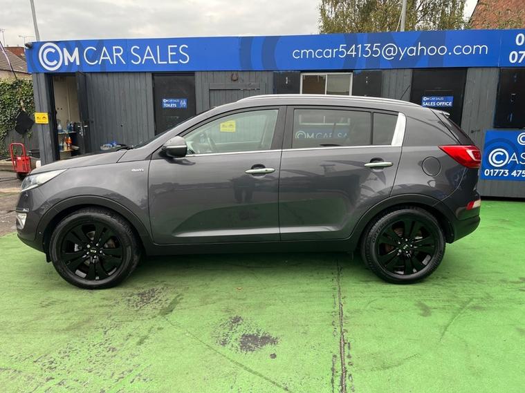EXCELLENT VALUE FOR MONEY KIA SPORTAGE 2.0 CRDI KX-4 6 SPEED AWD SUV, FINISHED IN DARK GUN GREY METALLIC WITH FULL GREY LEATHER INTERIOR, 18 ' ALLOY WHEELS, SATELLITE NAVIGATION, DUAL ZONE AUTO CLIMATE CONTROL AIR CONDITIONING, REAR CAMERA, HEAD LAMP WASH, HEATED FRONT AND REAR SEATS, PARK ASSSIT CONTROL, FRONT AND REAR PDC. PANORAMIC ROOF WITH OPENING FRONT SUNROOF, CRUISE CONTROL, POWER FOLDING DOOR MIRRORS, BLUETOOTH, CD / TUNER AUDIO, MEDIA INPUT, HILL DESCENT CONTROL, ELECTRONOC DIFF LOCK, PAS, ABS , TRACTION CONTROL, ONLY 84, 000 MILES WITH FULL SERVICE HISTORY INC STAMPED BOOK AND INVOICES, HAD 10 SERVCES, SUPPLIED WITH 2 KEYS AND 12 MONTHS MOT .BEEN REFUSED CREDIT PERHAPS WE CAN HELP.If you have had problems in the past obtaining car finance please give us a call as we now have companies on board who can help.We offer flexible finance packages at very competitive rates to suit most budgets.We are situated just 5 mins from junc 28 M1 Derbyshire located in Ripley opposite Frank key builders merchants post code DE53AS.PLEASE SEE ALL OUR REVIEWS ON AUTOTRADER.ALL MAJOR DEBIT CARDS TAKEN.FREE 12 MONTHS AA BREAKDOWN COVER INCLUDED. 3 MONTHS PARTS AND LABOUR WARRANTY INCLUDED.