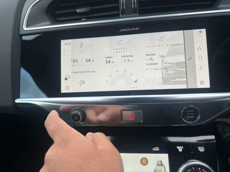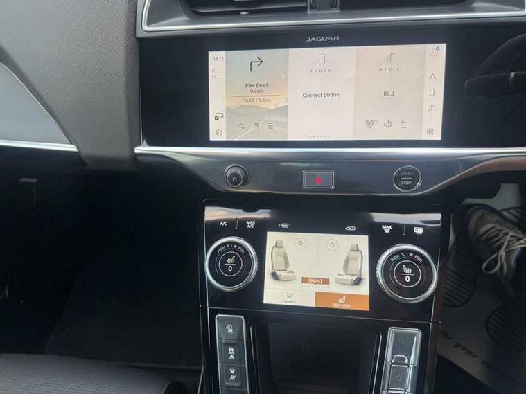 This 2024 Jaguar I-PACE 400 R-Dynamic HSE Black presents an exceptional ownership proposition with its remarkably low mileage of just 2500 miles. As a single owner vehicle, this electric SUV boasts a substantial 90 kWh battery, offering a maximum range of 275 miles when new. Charging is convenient, with a full charge at home on a 7kW charger taking approximately 10 hours and 3 minutes, while rapid public charging can replenish the battery from empty to 80% in as little as 49 minutes. This Four Wheel Drive model is equipped with essential technology for a refined driving experience, including front and rear parking aids with parking assistance sensors, a heated steering wheel for comfort, and seamless smartphone integration via Apple CarPlay and Android Auto, all complemented by Bluetooth connectivity.