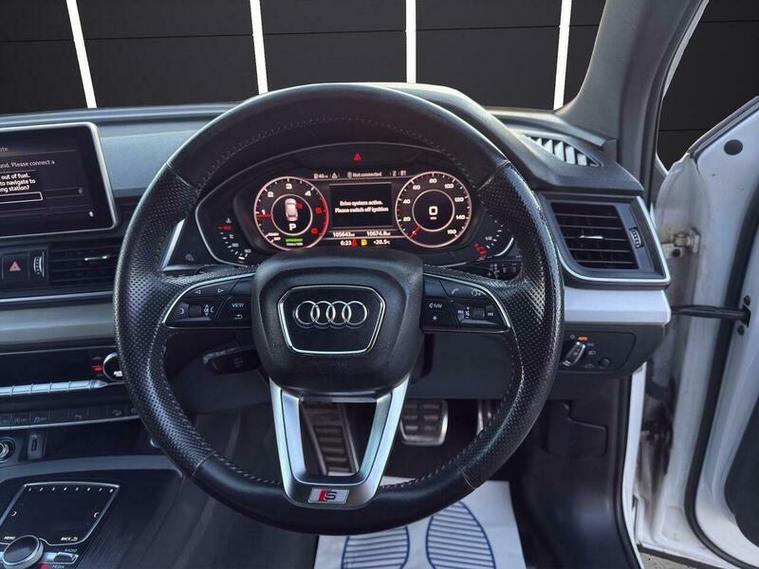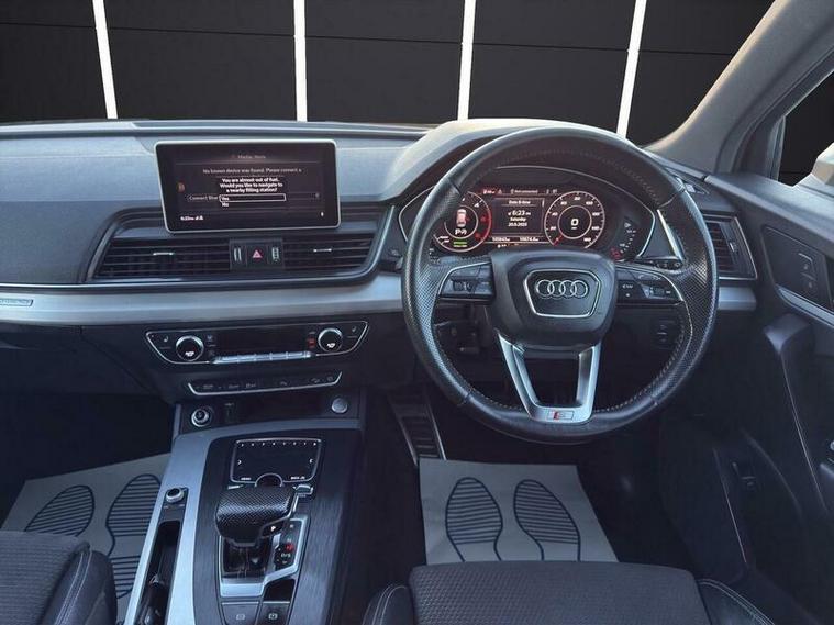 Kaz cars quality cars New timing chain / transmission service completed This Audi Q5 TDI S line from 2019 offers peace of mind with a clear vehicle history check. As a Euro 6 compliant model, it features a capable 2.0 litre diesel engine paired with Audi's renowned Four Wheel Drive system for confident handling. Inside, you'll find the comfort of heated front seats and the convenience of Deluxe 3-Zone Climate Control, ensuring a pleasant environment for all occupants. The Audi Parking System Plus, complete with front and rear sensors, makes manoeuvring effortless, while the integrated Bluetooth interface allows for seamless connectivity.