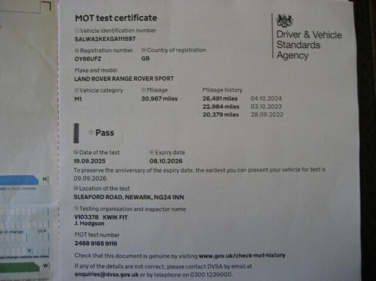 Metallic Scotia Grey with Ivory Premium Leather Seating - Landrover + 1 Private Owner from New (current owner for last 8 Years) - Just 31, 000 miles Complimented by a Landrover Dealer/Specialist Service History Printout to 29, 647miles May 2025 (6 Services) - with New MOT to October 2026 (No Advisories) - Great Spec being Dynamic HSE Model offering all the Spec you would wish for including Electric Sliding Panoramic Glass Sunroof - 21' Alloy Wheels on Recent Pirelli Premium Tyres - Original Cost New appoaching £70, 000+ - A really Well Cared for Range Rover Sport HSE Dynamic with very low mileage - Viewing Highly Recommended - For more info Please call Roger on 01158863792 - PART EXCHANGE - FINANCE OPTIONS - WARRANTY, 3 months warranty, Next MOT due 08/10/2026, Last serviced on 21/05/2025 at 29, 647 miles, Full service history, Excellent bodywork, Interior - Excellent Condition, Tyre condition Excellent, Four wheel-drive, 5 seats, Metallic Scotia Grey with IvoryPremium Oxford Leather, 2 owners, Upgrades - 21in Alloy Wheels - 5 Split Spoke Style 507, 21in Alloy Wheels - 5 Split Spoke Style 507 with Diamond Turned Finish, Electrically Deployable Towbar, Door Mirrors - Power Adjustable-Heated-Power Fold-Auto Dimming with Approach Lights, Full Size Spare Wheel, Privacy Glass, Sliding Panoramic Roof Including Powered Blind, Contrast Painted Roof - Santorini Black, Sliding Panoramic Roof, Front and Rear Premium Carpet Mats, Headlining - Morzine - Ivory, 18-Way Driver - 18-Way Passenger Style 5 Powered Seats with Memory, Perforated Oxford Leather - Ivory with Instrument Panel Upper-Espresso - MId-Ivory - Lower-Ivory, Standard Features - 12V Power Socket, 12V Power Socket in Second Row, 12V Socket in Loadspace, 2-Zone Automatic Climate Control, 60-40 Folding Rear Seats, 8in Touch Screen, ABS - Anti Lock Braking System, ATPC - All Terrain Progress Control, Acoustic Laminated Windscreen, Adaptive Dynamics, Adjustable Front Head Restraints, Adjustable Speed Limiter Device, Auto Dimming Rear View Mirror, Auxiliary Points - Front, Bluetooth Audio Streaming, Bluetooth Phone Connection, CBC - Cornering Brake Control, Carpet Mats - Front and Rear, Centre Armrest with Cubby Box, Centre High Mounted Stop Light, Cruise Control, Customer Configurable Autolock - Doors Lock on Driveaway, Customer Configurable Single Point Entry, DAB - Digital Audio Broadcast, DSC - Dynamic Stability Control, Door Mirrors - Power Adjustable-Heated-Power Fold with Approach Lights, Driver and Passenger Sunvisor with Illuminated Vanity Mirror, Dynamic Program, Dynamic Response, EBA - Electronic Brake Assist, EBD - Electronic Brake-Force Distribution, EPAS - Speed Proportional Electric Power Assisted Steering, ETC - Electronic Traction Control, Electric Parking Brake, Electrical Towing Preparation, FCAS - Four Corner Air Suspension, Follow Me Home Lighting, Front Cupholders, Front Fog Lights, GRC - Gradient Release Control, Gradient Acceleration Control - GAC, HDC - Hill Descent Control, Hazard Warning Lights Under Heavy Braking, Headlight Powerwash, Headlights - Xenon with LED Signature, Heated Front Seats, ISOFIX Child Seat Fixings x2, Illuminated Aluminium Tread Plates with Range Rover Lettering, Interior Mood Lighting, Keyless Entry, LED Front Signature Lights, Load Compartment Light, Loadspace Mounting Provisions, Locking Wheel Nuts, Map Reading Lights - Front, Non Smokers Pack, Paddle Shift, Parking Aid - Front, Parking Aid - Rear View Camera, Power Operated Child Locks, Power Tailgate - Single Piece, RSC - Roll Stability Control, Rain Sensing Windscreen Wipers, Range Rover Audio System 250w, Rear Lights - LED, Rear Parking Aid with Visual Display, Roller Loadspace Cover, Roof Rack Mounting Provisions-Blanking Plugs, Satellite Navigation System - HDD, Seats - 4-Way Lumbar Support, Seats - Driver Height Adjustable, Seats - Driver Memory, Seats - Front Passenger Memory, Seats - Heated Rear, Seats - Passenger Height Adjustable, Seats - Perforated Leather, Seats - Powered Driver Seat - 16-way, Seats - Powered Passenger Seat - 16-way, Secure Glove Box Stowage, Speakers x8, Stainless Steel Sports Pedals, Steering Column - Electric Tilt - Reach and Rake Adjustable, Steering Wheel - Leather, Steering Wheel - Multi-Function Controls, Steering Wheel Airbag-Ebony - Door Top Roll-Lunar - Door Armrest-Lunar - Door Main-Ebony - Seat Hardware-Ebony - Parcel Shelf-Ebony - Seat Belts-Ebony - Carpet-Ebony, TFT Virtual Instrument Panel, TL3 Dynamic Exterior Differentiation, TPMS - Tyre Pressure Monitoring System, Tailgate - Handsfree Powered Electrical Tailgate, Tailgate - Powered Electrical Tailgate, Terrain Response 2 Auto, Terrain Response 2 with Dynamic Program, Tilt Sensor, Torque Vectoring, Trailer Stability Control, Trim Finisher - Sport Textured Aluminium, Voice Control - Navigation, Volumetric Alarm, Windows - Electric Front and Rear with Global Close, Windscreen - Heated, Windscreen Washer Jets - Heated, , - For Further Information or to book an appointment to view - please call Roger direct on 01158863792 - Most times available by prior appointment
