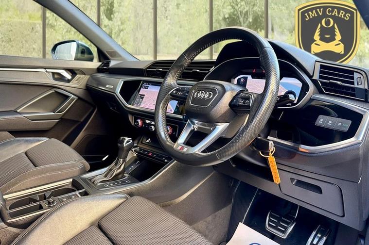JMV CARS LTD ARE DELIGHTED TO PRESENT THIS STUNNING AUDI Q3 S LINE SPORTBACK AUTOMATIC WITH A HUGE SPECIFICATION, PRESENTED WITH A SERVICE HISTORY, SATELITTE NAVIGATION, FULLY SLIDING PANORAMIC SUNROOF WITH SUNBLIND, BODYKIT, VIRTUAL COCKPIT, REVERSE CAMERA, FULL S LINE EMBOSSED LEATHER UPHOLSTERY, BANG AND OLUFSEN SOUND SYSTEM, AUDI SIGNATURE LIGHTING SYSTEM, BLUETOOTH HANDS FREE AND MEDIA, PARKING SENSORS, HEIGHT ADJUSTABLE STEERING WHEEL AND SEAT, STEERING WHEEL FUNCTIONS, THIS AUDI Q3 IS TRULY STUNNING AND IS FULLY LOADED, , , WELCOME TO JMV CARS, WE ARE AA PARTNERS AND TRUSTED DEALER WITH OVER 100 CARS IN STOCK, ALL VEHICLES SUPPLIED WITH 12 MONTHS AA RECOVERY, PART EXCHANGE WELCOME, ALL VEHICLES SUPPLIED WITH 12 MONTHS MOT IF LESS THAN 6 MONTHS, OPEN 7 DAYS A WEEK, WE CAN ARRANGE FINANCE AT COMPETITIVE RATES, ALL CREDIT AND DEBIT CARDS ACCEPTED, NATIONWIDE DELIVERY AVAILABLE, CALL ANYTIME UP TO 9PM, dealer's website