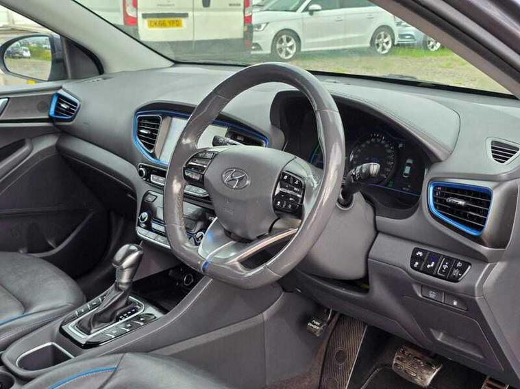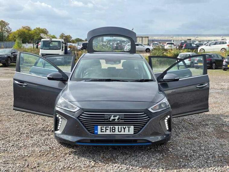 This car comes with 5 seats, Grey, 2 owners, 100 Percent MapCare Programme - 10 Years of Map Updates, 12V Power Outlet, 15in Alloy Wheels with Aerodynamic Wheel Trims, ABS - Anti-Lock Brake System, Air Conditioning - Driver-Only Mode, Air Conditioning - Dual Zone Climate Control, Airbags - Front - Front Side - Curtain and Drivers Knee, Alloy Pedals, Arm Rest - Front with Storage, Automatic De-Fog System for Front Windscreen, Automatic Dimming Rear View Mirror, Automatic Headlights with Dusk Sensor, Automatic Windscreen Wipers with Rain Sensor, Autonomous Emergency Brake, Blind Spot Detection System - BSD, Bluetooth Connectivity, Bumper Accents, Centre Console - Tablet Storage, Cruise Control - Smart Adaptive Speed Control, Cup Holders - Front, Daytime Running Lights - LED, Deadlocks, Door Mirror Puddle Lights, Door Mirrors - Body Coloured, Door Mirrors - Power Folding, Door Scuff - Chrome with IONIQ Logo, Drive Mode Select - Gear Lever, Drivers Seat - Ventilated, Drivers Seat Electric Adjustments, Drivers Seat with Memory Function, Drivers Supervision Instrument Cluster with TFT Display - 7in, Electric Power Steering with Variable Drive Modes, Electric Windows - Front and Rear, Electric Windows - Front with Anti-trap and One-touch Controls, Electronic Stability Control - ESC, Exterior Door Handles - Body Coloured with Chrome Insert, Fog Lights - LED Rear, Front Head Restraints - Vertical and Horizontal Adjustment, Front Passenger Airbag De-Activation Switch, Front Passengers Seat - Heated, Front Passengers Seat - Ventilated, Front Seat Back Pockets - Drivers Seat, Front Seat Back Pockets - Passengers Seat, HAC - Hill-Start Assist Control, Head Restraints - Rear with Vertical Adjustment, Headlights - Bi-Xenon, Heated Rear Seats, Heated Rear Windscreen, Heated Steering Wheel, Indicator Lights - Door Mirror - LED, Interior Colour-Coded Seat and Trim Accents, Interior Door Handles - Chrome Effect, Interior Light - Centre, Interior Light - Luggage Compartment, Interior Light - Map Reading Lights, Lane Departure Warning System with Lane Keeping Assist, Leather Wrapped Steering Wheel, Luggage Net, Parking Brake - Foot, Parking Sensors - Front and Rear, Passenger Seat Height Adjustment - Manual, Phone Connection - Android Auto, Phone Connection - Apple CarPlay, Positioning Lights LED, Radiator Grille - Active Air Flap, Radiator Grille - Gloss Black with Chrome Inserts, Radio - RDS and Digital Radio - DAB, Rear Air Vents in Centre Console, Rear Bumper - Two-Tone, Rear Cross Traffic Alert - RCTA, Rear Lights - LED, Rear Spoiler with Integral LED Brake Light, Rear View Parking Camera with Parking Guidance System, Remote Central Locking, Seats - Drivers Electric Lumbar Support, Seats - Heated Drivers, Side Body Moulding, Smart Key - Keyless Entry with Engine Start-Stop Button, Solar Glass with Windscreen Shade Band, Spare Wheel - Emergency Space Saver - Steel, Speakers - Upgraded Infinity Sound System - 1 Centre - 2 Tweeters - 2 Front - 2 Rear - 1 Subwoofer and 1 Ext. Amp, Split Folding Rear Seats - 60-40, Steering Wheel with Audio - Phone and Cruise Controls, Sun Visors with Driver and Passenger Illuminated Vanity Mirrors, Sunglasses Holder, Touchscreen Satellite Navigation - 8in, Tyre Pressure Monitoring System - TPMS, USB - Drivers Arm Rest, USB and AUX Connections, Window Surround - Chrome Finish, Windscreen Washer Fluid Sensor and Warning Indicator, Wireless Phone Charging Pad,
