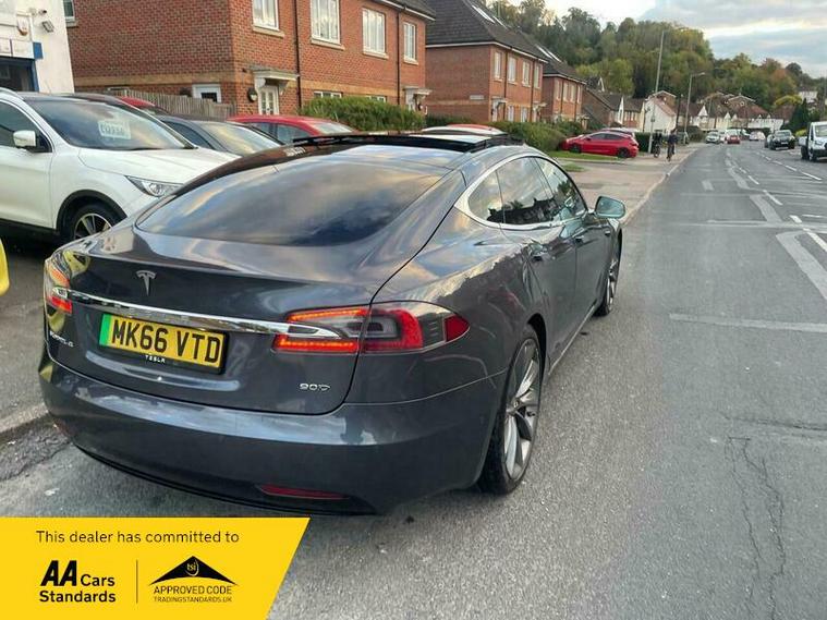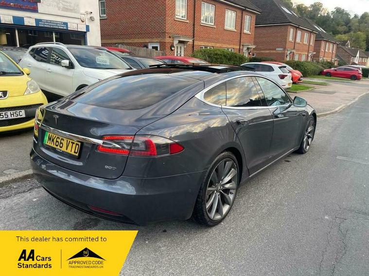 This 2016 Tesla Model S 90D presents a superb ownership history, having had only two owners since new. As an all electric vehicle, it boasts a substantial 86 kWh battery, offering an impressive maximum range of 346 miles when new. This Model S features four wheel drive for enhanced traction and control. Charging is convenient, with a full charge at home taking approximately 13 hours using a 7kW charger, while rapid public charging can replenish the battery from empty to 80% in just 53 minutes. Notable features include a panoramic opening sunroof, keyless entry for effortless access, dual zone climate control for personalised comfort, blind spot warning to aid awareness, and automatic LED headlights for optimal visibility.