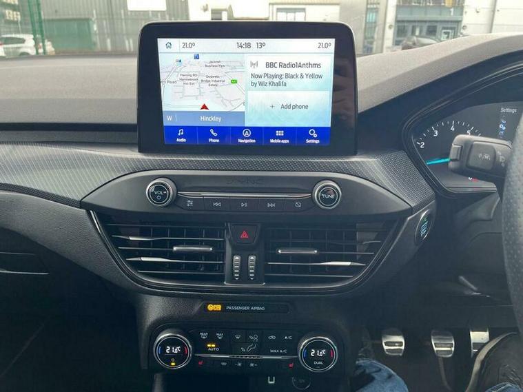 Boasting a full dealership service history (No expense spared) and a clear vehicle history check, this 2018 Ford Focus ST-Line X is a prime example of well maintained motoring. Powered by an efficient 1.0L Petrol engine, this Euro 6 compliant model offers a responsive drive with a 0-62mph time of 10.0 seconds, all while benefiting from low CO2 emissions. The ST-Line X trim ensures a sporty aesthetic and comes equipped with desirable features such as front and rear parking sensors with parking assistance, the Ford SYNC3 DAB Navigation System complete with Android Auto and Apple CarPlay connectivity, and Bluetooth for seamless integration. Comfort is further enhanced by heated front seats and dual-zone electronic automatic temperature control for a pleasant cabin environment in all conditions.