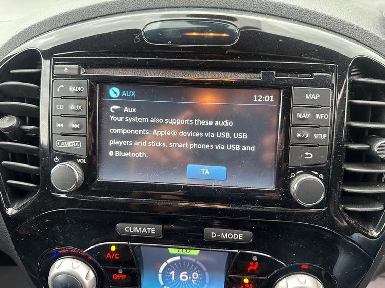 Nissan Juke | Petrol | Manual | Euro 6 | ULEZ | Start/Stop | ABS | Air Conditioning | Alarm | Alloy Wheels | Central Locking | Climate Control | Electric Windows | Power Assisted Steering | 12V Power Socket | 16in Alloy Wheels | Adjustable Steering | Bluetooth | Cruise Control | Cup Holders | Daytime Running Lights | Electric Mirrors | Electric Folding Mirrors | ESP | Engine Immobiliser | Folding Rear Seats | Front Airbags | Front Fog Lights | ISOFix Anchor Point | Parking Sensors | Radio | Safety Belts | Safety Belts Rear | Speakers | Satellite Navigation | All our vehicles come with 12 months MOT | Free interim service and inspection carried out prior to sale | Free 6 months nationwide warranty and free 12 months breakdown cover with all of our vehicles | Well-looked-after example | Looks and drives great 5-day AA Driveaway Insurance available for just £44.99 (subject to eligibility) | Any inspection or test drive welcome | Nationwide delivery service available | Viewing is highly recommended | Upgraded warranty cover is available from only £250, giving you that added peace of mind (6, 12, 24-month covers available) | Competitive prices paid for part exchanges | All of our vehicles are HPI checked and mileage checked Standard spec: ** All major debit and credit cards accepted | Open 7 days a week with no appointments necessary | Late-night viewings available by appointment only | All of our cars are ready to drive away today | Call our sales team today on 01709622518 to arrange a test drive | Leave a deposit to secure this vehicle today.