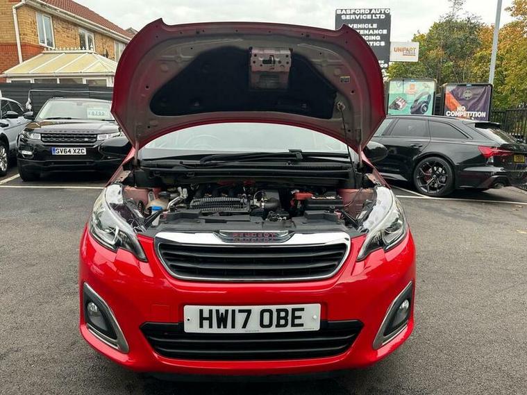 Basford motors ltd delighted to offer this stunning Peugeot 108 1.2 PureTech GT Line Euro 6 5dr with low millage, This 2017 Peugeot 108 GT Line offers excellent peace of mind with its MOT valid until September 2026. This stylish hatchback is equipped with a 1.2L petrol engine and meets Euro 6 emissions standards. It comes with a 3 month warranty for added security. The vehicle has a partial service history, with the last service completed on 25th September 2025 at 64, 162 miles. Notable features include a reversing camera with parking assistance, automatic headlights, manual air conditioning, Bluetooth connectivity, and the convenient PEUGEOT Open and Go system for keyless entry.cat n