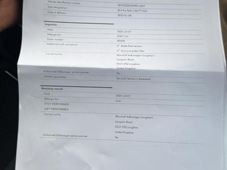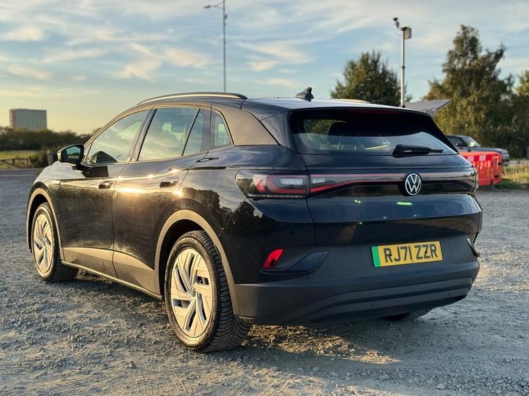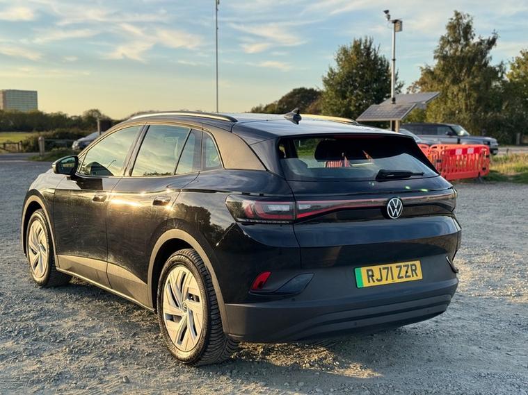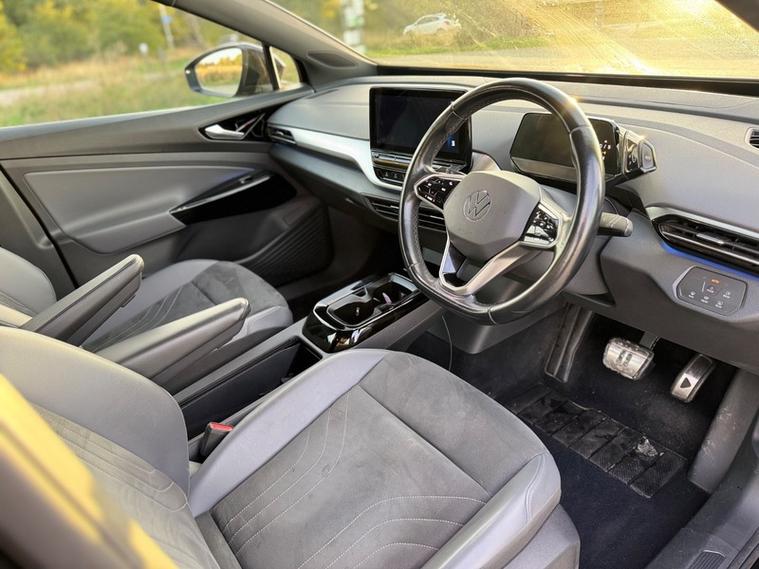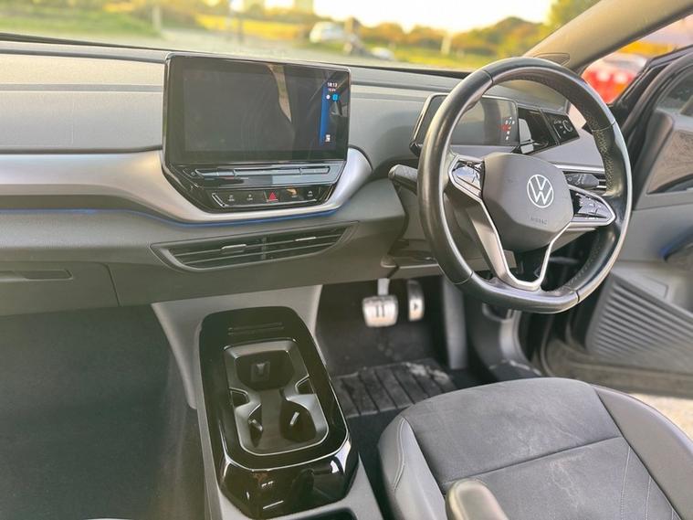 This 2022 Volkswagen ID.4 Pro Performance Life is a superb example, having had only one owner since new. As an electric vehicle, it offers a smooth and quiet driving experience, powered by an 82 kWh battery that provides a maximum range of 320 miles when fully charged. Charging at home using a 7kW charger takes approximately 12 hours and 40 minutes, while rapid public charging can replenish the battery from empty to 80% in just 40 minutes. This particular model benefits from the Life trim and includes the Interior Style Plus package with memory seats, the Assistance Pack Plus featuring a 360 degree camera and keyless entry, and a Comfort Pack with heated seats, steering wheel, and climate control. It also boasts keyless opening and start, along with smart adaptive cruise control and a rain sensor., , The Volkswagen ID.4 Pro Performance Life stands out with its impressive 320 mile maximum range, indicating excellent efficiency for an electric car. Its large boot space offers practicality for everyday use and longer journeys, making it a versatile choice. The inclusion of features like the 360 degree camera and smart adaptive cruise control enhances both convenience and safety, setting it apart from other vehicles in its class. This well equipped, single owner electric SUV is ready for its next adventure., 5 seats, Black, 1 owner, Upgrades - Assistance Pack Plus, Interior Style Plus, Standard Features - 10-Inch Display including App Connect and Digital Connectivity, 19in Steel Wheels - Aero, ABS - Anti-Lock Braking System, Airbags - Curtain Front and Rear, Airbags - Front Side, Anti-Theft Alarm System with Interior Monitoring in Cab - Backup Horn and Tow-Away Protection, Belt Tensioners in the Front and Rear Outside, Centre Console with Armrest in the Front Seats, Comfort Pack, Discover Pro Navigation System incl. Automatic Charging Stop Planning, Driver Assistance Pack, Drivers and Front Passengers Airbags, Electric Windows - Front and Rear, Exterior E-Sound, ID Light, Infotainment Package, Interior Style, Keyless Opening System and Keyless Start, LED Headlights with Automatic Driving Light Switching and LED Tail Lights, LED Rear Combination Lights, Mode 3 - 32-AMP - 7.2kW Charging Cable for Charging at Public Charge Points, Multifunction Camera, Multifunction Steering Wheel and Natural Voice Control, Pro-active Passenger Protection System, Rear Seat Bench Unsplit - Backrest Split Folding with Centre Armrest, Roof Rails, Smart Adaptive Cruise Control and Rain Sensor, Sound System, Speed Sensitive Power Steering, We Charge Go Access, We Connect ID App,