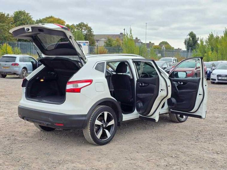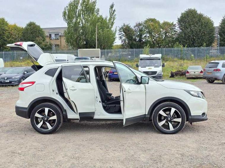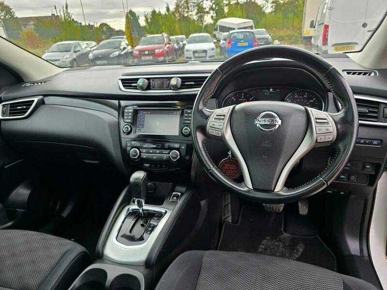 This car comes with 5 seats, White, 3 owners, 18in Alloy Wheels - Diamond Cut, 3 x 3-Point Rear Seatbelts with ELR, 5in High Definition Full Colour TFT Screen Combimeter, 6 Speakers, 60-40 Split Rear Folding Seats, AUX Socket for MP3 Player, Alarm, Automatic Folding Door Mirrors, Automatic Lights and Wipers, Black Honeycomb Front Grille, Bluetooth, Body-coloured Bumpers - Handles and Mirrors, CD Radio, Chrome Glass Surround, Cruise Control with Speed Limiter, Drive Computer, Driver Seat Height Adjustment, Driver-Passenger-Side and Curtain Airbags, Drivers Side One-touch and Anti-trap Window, Dual Zone Climate Control Air Conditioning, ESP ABS EBD and Brake Assist, Electric Speed-Sensitive Power Steering, Front Centre Console and Armrest, Front Fog Lamps with Chrome Ring, Front Seat Belt Height Adjustment, Front Seat Belts with Load Limiter and Pretensioners, Front and Rear Electric Windows, Head Restraints - 3 Rear, Height Adjustable Front Head Restraints, Hill Start Assist, ISOFIX Child Seat Anchoring Points, Immobiliser, Intelligent Key, Interior Ambient Lighting, LED Signature Daytime Running Lights, Leather Steering Wheel, Luggage Board System, Nissan Chassis Controls, Premium Pack, Puncture Repair Kit, Push Start-Stop Button, Rear Door Child Locks, Rear Privacy Glass, Rear Seat Armrest with 2 Cupholders, Remote Audio Control, Seats - Drivers Lumbar Support, Seats - Passengers Height Adjustment, Selectable Steering - Normal or Sport, Smart Vision Pack, TPMS - Tyre Pressure Monitoring System, Tech Pack, Tilt and Telescopic Adjustable Steering Wheel, e-PKB - Electric Parking Brake,