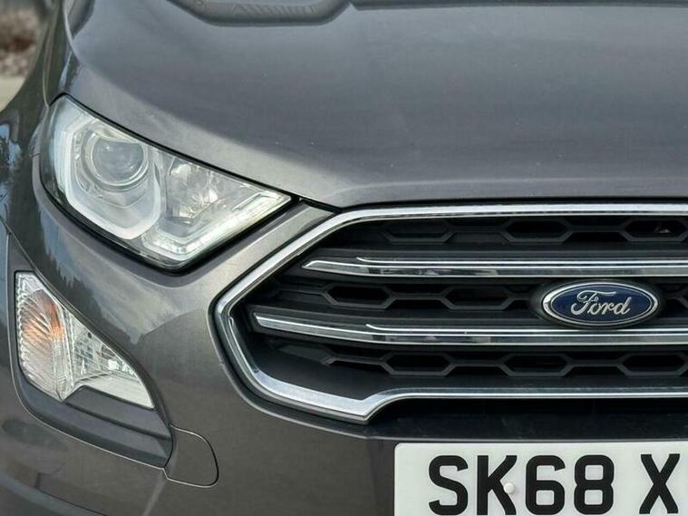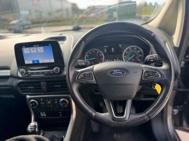 This 2018 Ford EcoSport Zetec offers an exceptional blend of style and practicality, making it a smart choice for any driver. Powered by an efficient 1.0 litre petrol engine, this Euro 6 compliant model is designed to be kind to your wallet and the environment. Inside, you'll find the user friendly Ford DAB Radio featuring Ford SYNC3, which seamlessly integrates with your smartphone through Apple CarPlay and Android Auto. Stay connected and entertained on every journey, all while enjoying the comfort of manual air conditioning.