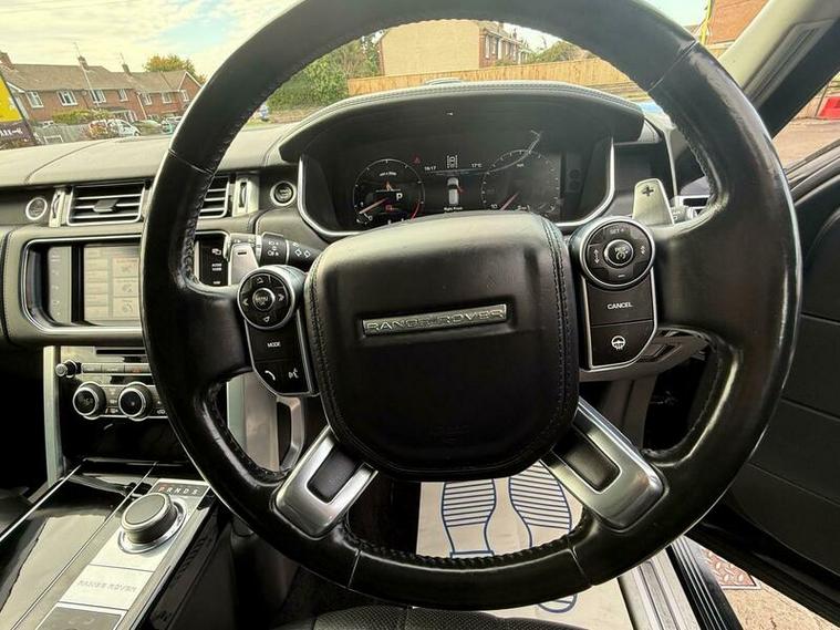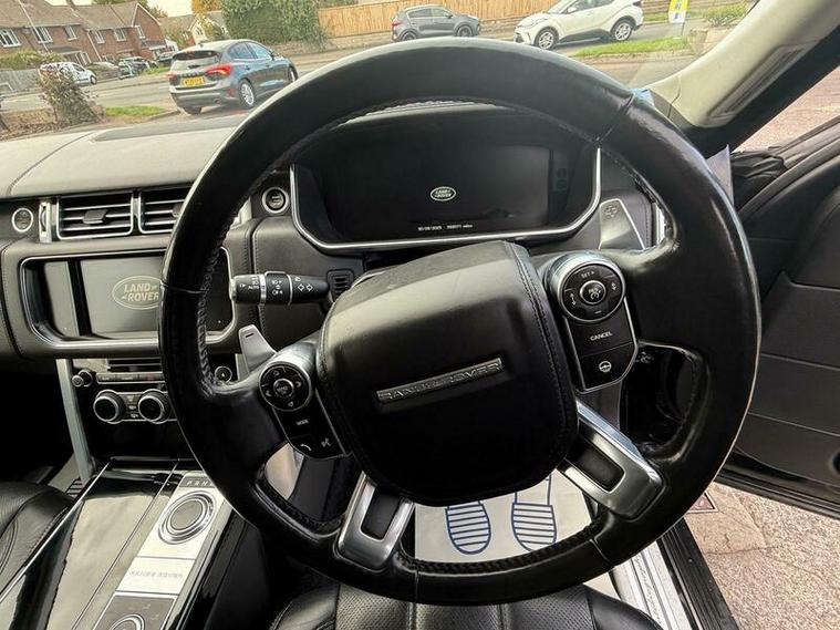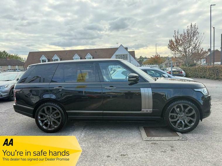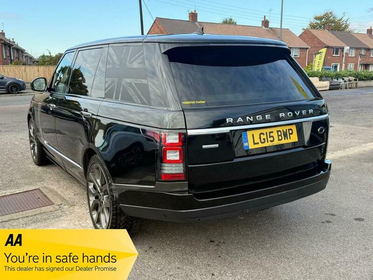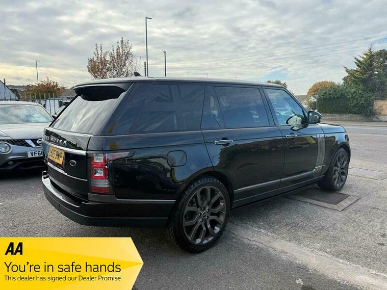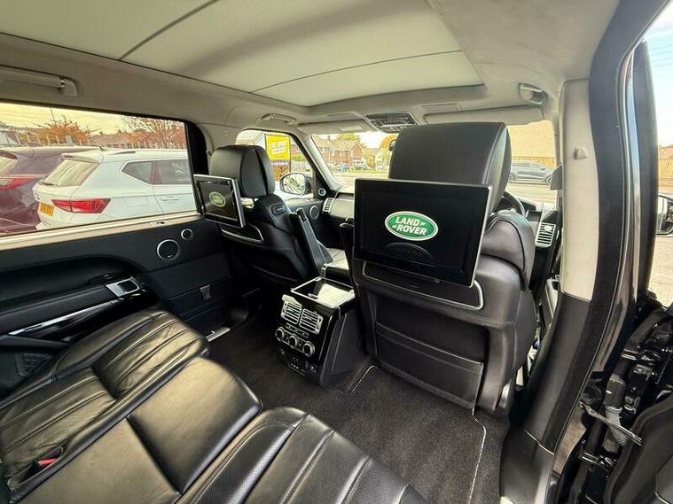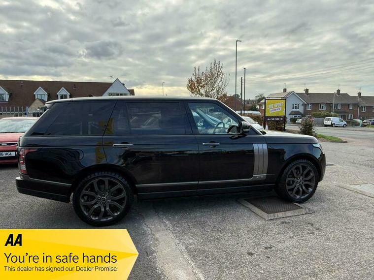 Santorini Black Range Rover Autobiography LWB 2015, top of the range luxury SUV. V8 5.0 Supercharged 510hp, 68, 071 miles, long wheelbase, full Autobiography luxury pack, electric deployable side steps, massage, heated, cooled leather seats, Meridian premium sound and rear entertainment. Full Land Rover main dealer service history 7 services. MOT valid until 03/03/2026. Category S fully repaired by specialists, documentation and inspections available.