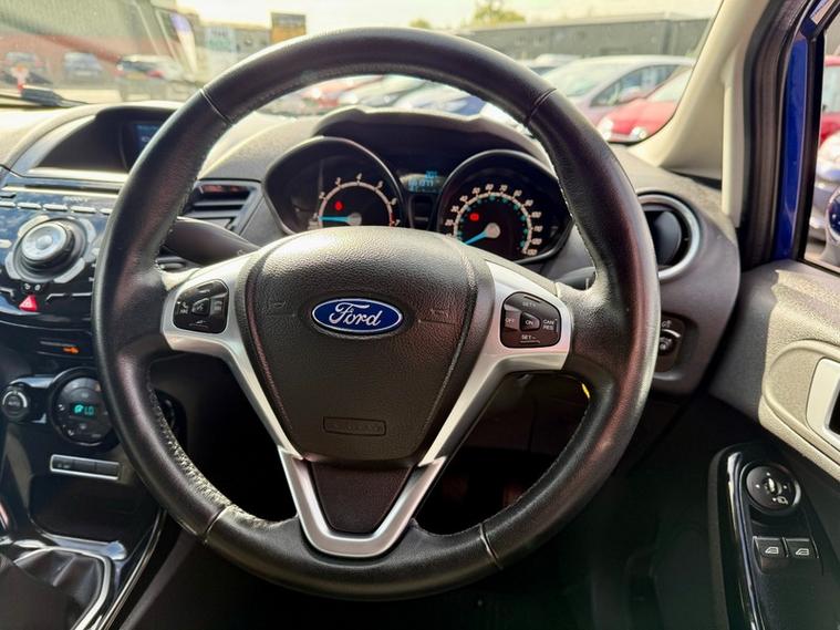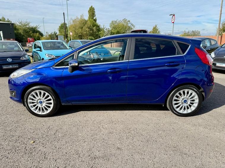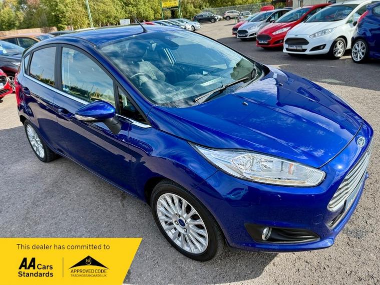 ABSOLUTE CARS have this 5 Door Ford Fiesta 1.0T EcoBoost Titanium Euro 5 (s/s) in Metallic Deep Impact Blue with 16' Alloys. An Ideal First Car + Only £20 a Year Tax ! Call in for a test drive, finance arranged & part exchange considered., 3 months warranty, Next MOT due 29/09/2026, Last serviced on 26/09/2025 at 61, 345 miles, Full service history, Grey Cloth interior, 5 seats, Metallic Blue, 3 owners, Upgrades - Spare Wheel - 14in Steel, Standard Features - 12V Power Socket - Front, 16in Alloy Wheels - 15 Spoke, 4.2in TFT Display, ABS - Anti-lock Braking System, Aesthetic Lighting Package, Airbags - Curtain, Airbags - Driver Side Knee, Airbags - Front Passenger, Airbags - Head and Thorax, Airbags - Passenger Deactivation, Armrest - Centre Console, Automatic Dimming Rear View Mirror, Automatic Rain Sensing Wipers, Brake Warning Lights - Automatic Flashing of Brake Lights Under Heavy Braking, Bumpers - Front and Rear - Body Colour, Centre Console - with Trinket Tray - Two Cup Holders, Chrome Belt Line Finisher, Courtesy Light - Overhead with Theatre-Style Dimming, Courtesy Lights with Map Reading Lights, Cruise Control, Door Handles - Body Colour, Drivers Airbag, EATC - Electronic Automatic Temperature Control - Climate Control, EBA - Emergency Brake Assist, EBD - Electronic Brakeforce Distribution, ECOmode, EPAS - Electric Power Assisted Steering, ESP - Electronic Stability Programme, Electric Windows - Front with One Touch Lowering Drivers, Emergency Assistance, Emergency Brake Warning - Automatic Hazard Warning Lights, Floor Mats - Front and Rear - Velour, Ford AM-FM CD Audio System, Ford Easy Fuel Capless Refuelling System with Misfuel Inhibitor, Front Fog Lights - Chrome Bezel Rings, Front Lower Grille - Chrome Surround, Front Lower Grille Insert and Surround - Black, Front Seatback Map Pockets - Driver and Passenger, Front Upper Grille - Chrome Finish Surround, Front Upper Grille Insert - Chrome bars, Gear Knob - Leather, Gearshift Indicator Light, Gearshift Knob - Leather-Trimmed with Chrome Finish Bezel, Glovebox - Illuminated, Handbrake Release Knob - Chrome, Head Restraints - 2-way Adjustment, Head Restraints - Rear 2-Way Adjustment, Headlights - Automatic, Headlights - Courtesy Delay, Headlights - Follow Me Home, Headlights - Halogen Projector with Silver Bezel, Headliner - Woven, Heated Front Windscreen, High-Mounted Rear Brake Light, Hill Start Assist, IPS - Intelligent Protection System, Interior Door Lever - Chrome Finish, LED Ambient Courtesy Lighting, LED Daytime Running Lights, Leather-Trimmed Handbrake, Loadspace Compartment Light, Loadspace Floor Carpet, Locking Wheel Nuts, MyKey, Passenger Airbag Deactivation Indicator, Passengers seat manual 2-way adjustment, Perimeter Anti Theft Alarm, Pollen Filter, Power Fold Door Mirrors, Rake and Reach Steering Adjustable, Rear Courtesy Lights, Rear Privacy Glass, Rear Seats Back - Carpet, Rear Spoiler - Body Colour, Remote Central Locking, Removable Package Tray, Seats - 60-40 Split Folding Back and Fixed Cushion, Seats - Drivers 4-Way Adjustment, Seats - Drivers Lumbar Support, Seats - Front Comfort Style, Seats - ISOFIX Mounting Brackets for Child Seats, Second Remote Ignition Key, Sony DAB Digital Radio, Speakers - x8, Steering Wheel - 3-Spoke - Leather Trimmed with Bezel, Steering Wheel - Multifunction, Stowage Pockets - Driver and Front Passenger Seatbacks, Suspension - Front Stabiliser Bar, Tailgate Handle - Body Colour with Chrome Finisher, Trip Computer, Tyre Inflator Kit, USB and AUX Connection for External Music Devices, AS WE ARE AN AA CARS DEALER THIS VEHICLE COMES WITH 12 MONTHS AA BREAKDOWN COVER.