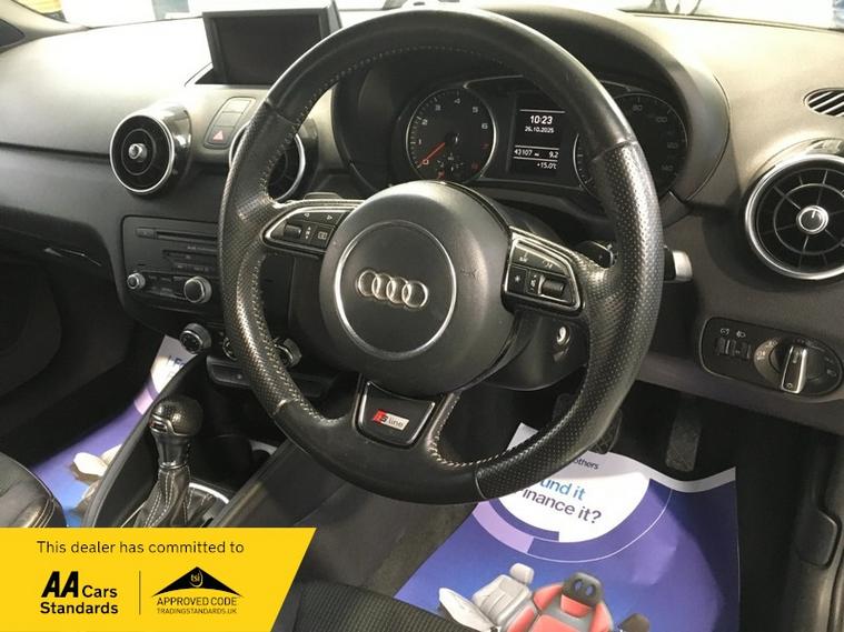 CRACKING LOW MILEAGE AUDI A1 1.4TFSI CoD S LINE 7 SPEED AUTOMATIC FINISHED IN 'AMALFI WHITE'. LOW EMISSIONS SO ONLY £20 FOR A YEARS ROAD TAX. REFINEMENTS INCLUDE BLUETOOTH, PARKING SENSORS, CLIMATE CONTROL, HALF LEATHER, 17' ALLOY WHEELS, PRIVACY GLASS AND AUTO LIGHTS. COMES WITH AN MOT, WITH NO ADVISORIES, UNTIL OCTOBER 2026