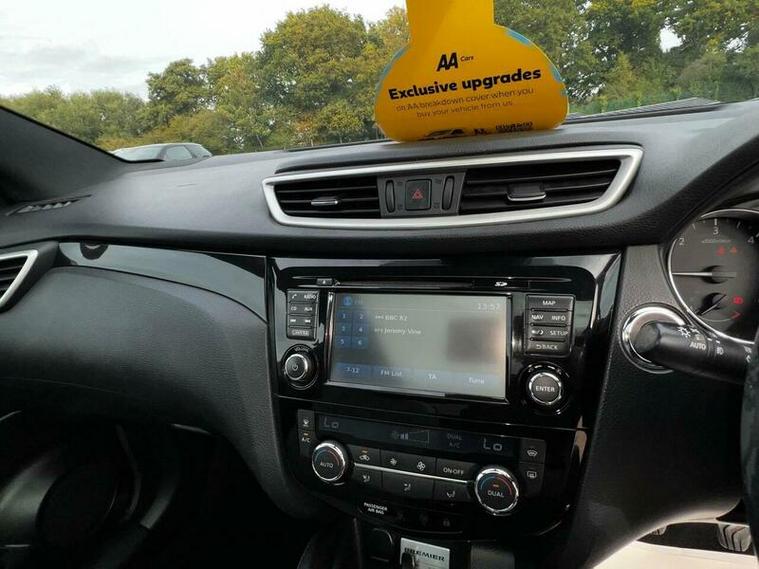 This 2014 Nissan Qashqai dCi Premier Limited Edition boasts an impressive provenance, having been owned by only two previous keepers. This Four Wheel Drive model features a 1.6 litre diesel engine and comes equipped with a range of desirable features. Enjoy the convenience of rear parking sensors with parking assistance, and experience enhanced comfort with heated front seats. The panoramic glass roof, or fixed panoramic sunroof, floods the cabin with light, while the Bi-LED headlights provide excellent visibility. Stay comfortable in all conditions with dual zone climate control.