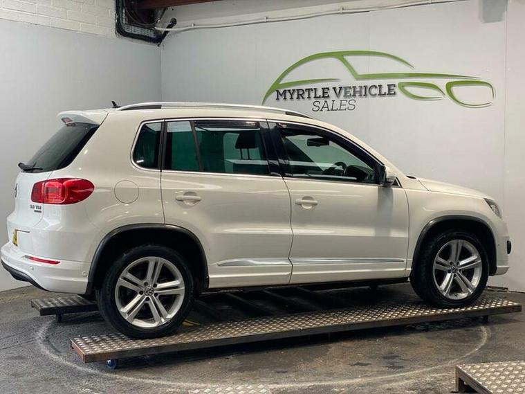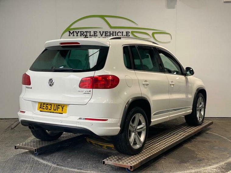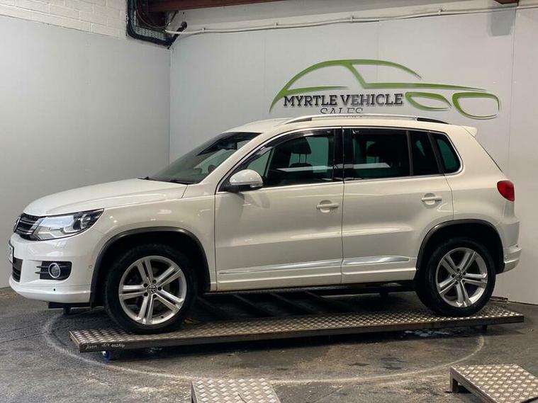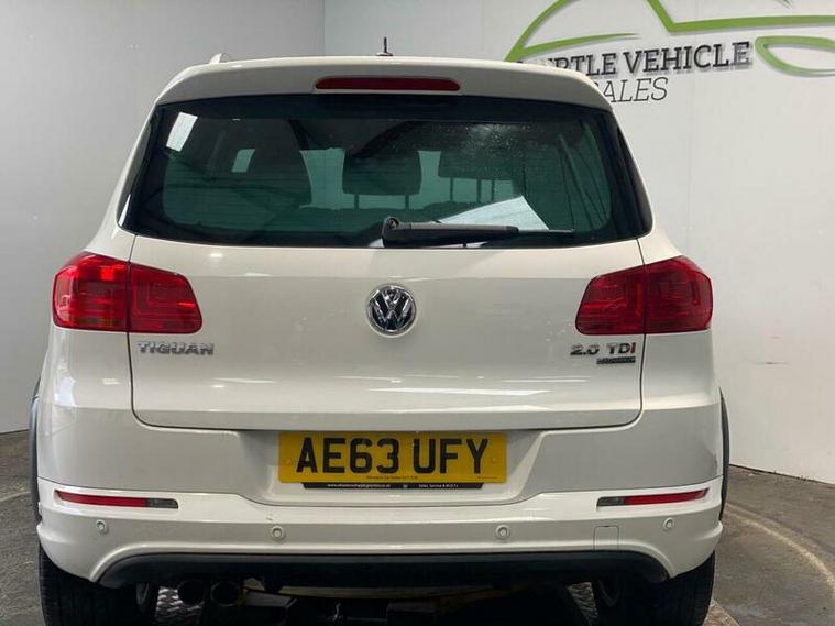 This 2013 Volkswagen Tiguan TDI R Line boasts a clear vehicle history, offering you peace of mind. This four wheel drive model features a robust 2.0 litre diesel engine and an impressive towing weight of 2200 kg. For added convenience, it comes equipped with Park Assist, including front and rear parking sensors, and Bluetooth telephone preparation. The headlights are also designed to activate automatically with a dusk sensor, ensuring optimal visibility.