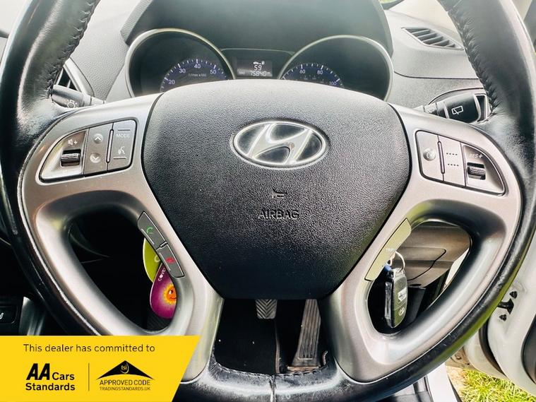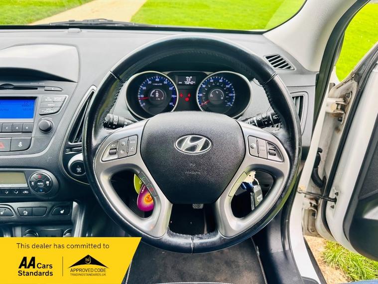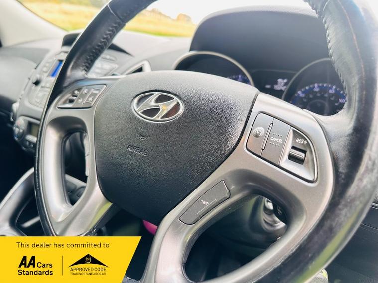 This 2014 Hyundai ix35 GDi SE presents a superb ownership proposition, having been cherished by just one owner from new and boasting a clear vehicle history check. This well maintained 1.6 litre petrol model has covered only 75814 miles, which is notably low for its age. Inside, you'll find comfort and convenience with heated front seats, dual zone climate control featuring a humidity sensor and ioniser, and Bluetooth connectivity with voice recognition for seamless calls and music. Practicality is also key, with rear parking sensors to aid manoeuvring and automatic headlights that adjust to lighting conditions.
